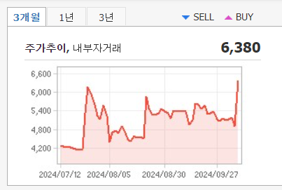 예스24의 현재 주가는 6,380원입니다. 전일 대비 원 이동한 모습입니다. 시가 총액은 1595억 원이며 발행 주식은 총 25,000,000주 입니다. 외국인이 보유한 비중은 0.30%입니다. 예스24 기업의 영업이익은 억 원을 달성했으며 배당 수익율은 7% 입니다.