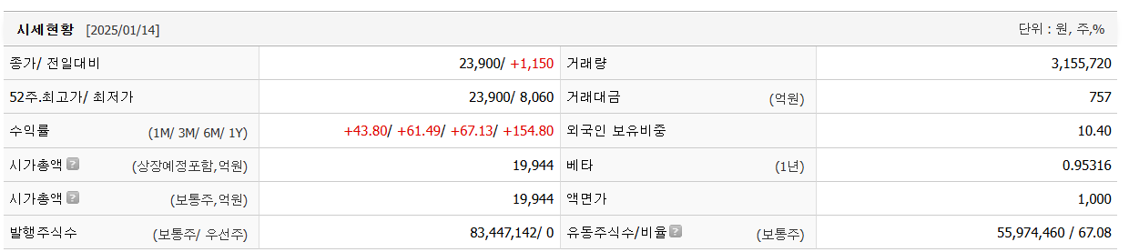 | 한국첨단소재 주가 변동 예측 전망 (0) | 2025.01.16 |