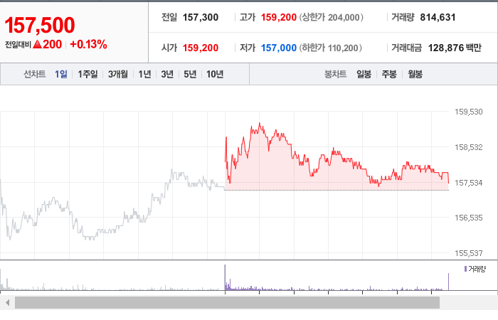현재 NAVER의 주가는 157,500원으로, 전날과 비교해 -8.22원의 변화를 보이고 있습니다. 주주 현황을 살펴보면 BlackRock Fund Advisors와 그 외 13명이 총 8.23%의 지분을 보유하고 있습니다. NAVER는 인터넷 서비스 분야의 기업으로, 현재 주가는 157,500원입니다. NAVER의 시가 총액은 25조 5,794억 원이며, 발행된 주식 수는 160,784,508주입니다. 외국인 보유 비율은 42.78%이며, 현재 거래량은 825,934주에 달하고 있습니다. NAVER의 매출액은 25,261억 원에 이릅니다.