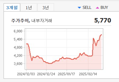 - 최고가: 2025년 2월 28일, 5,770원