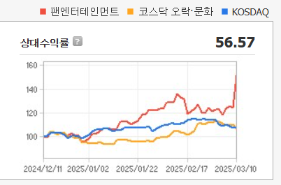 팬엔터테인먼트의 주가는 최근 급등세를 보이고 있다.