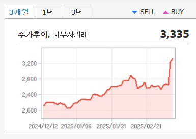 - 52주 최고가는 3,435원(2025년 3월 10일), 최저가는 1,810원