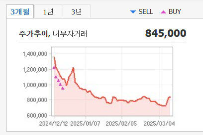 - 2025년 3월 10일 주가: 829,000원 (+14.19%)