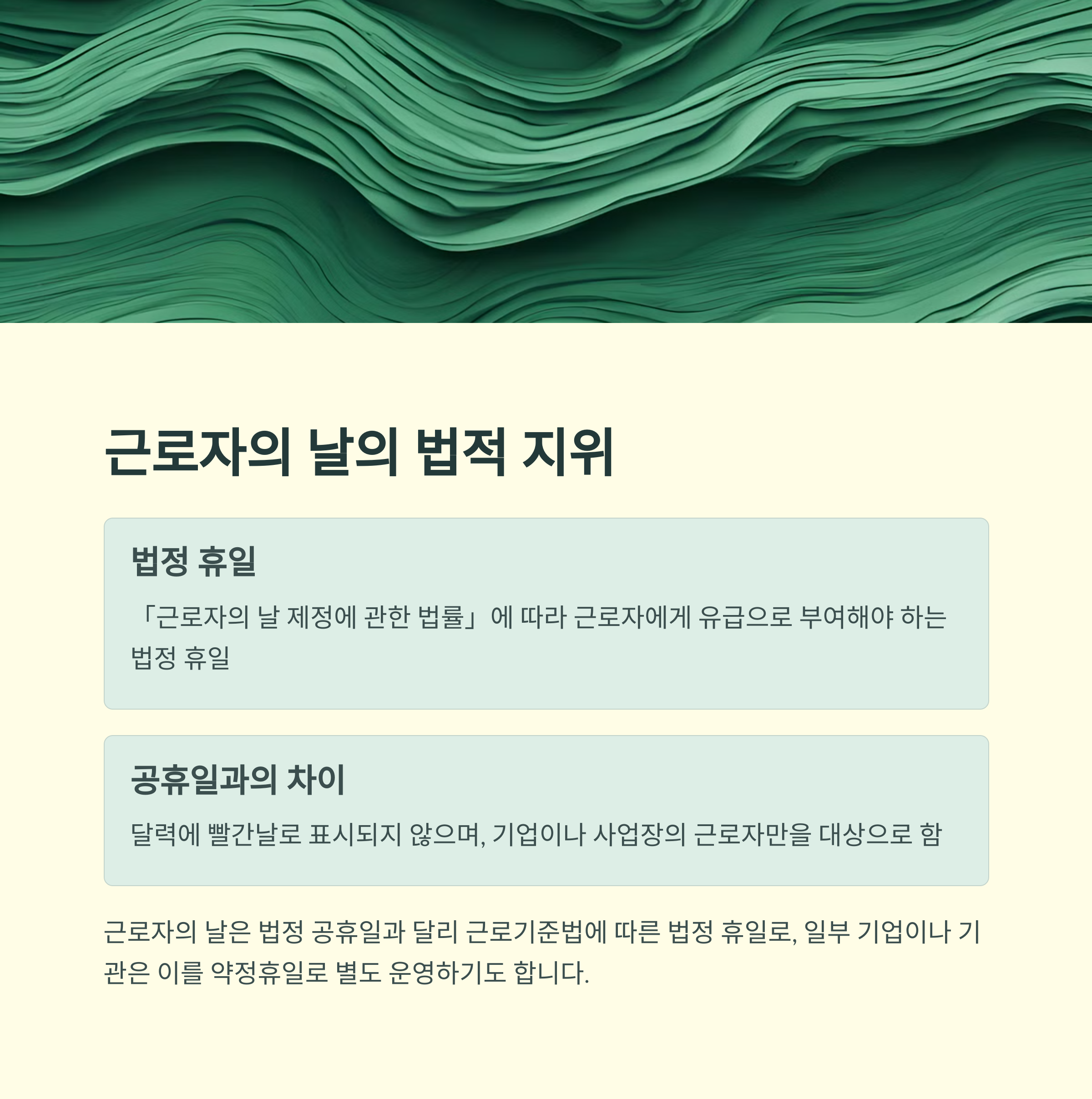 근로자의 날의 법적 지위: 공휴일과 휴일의 차이