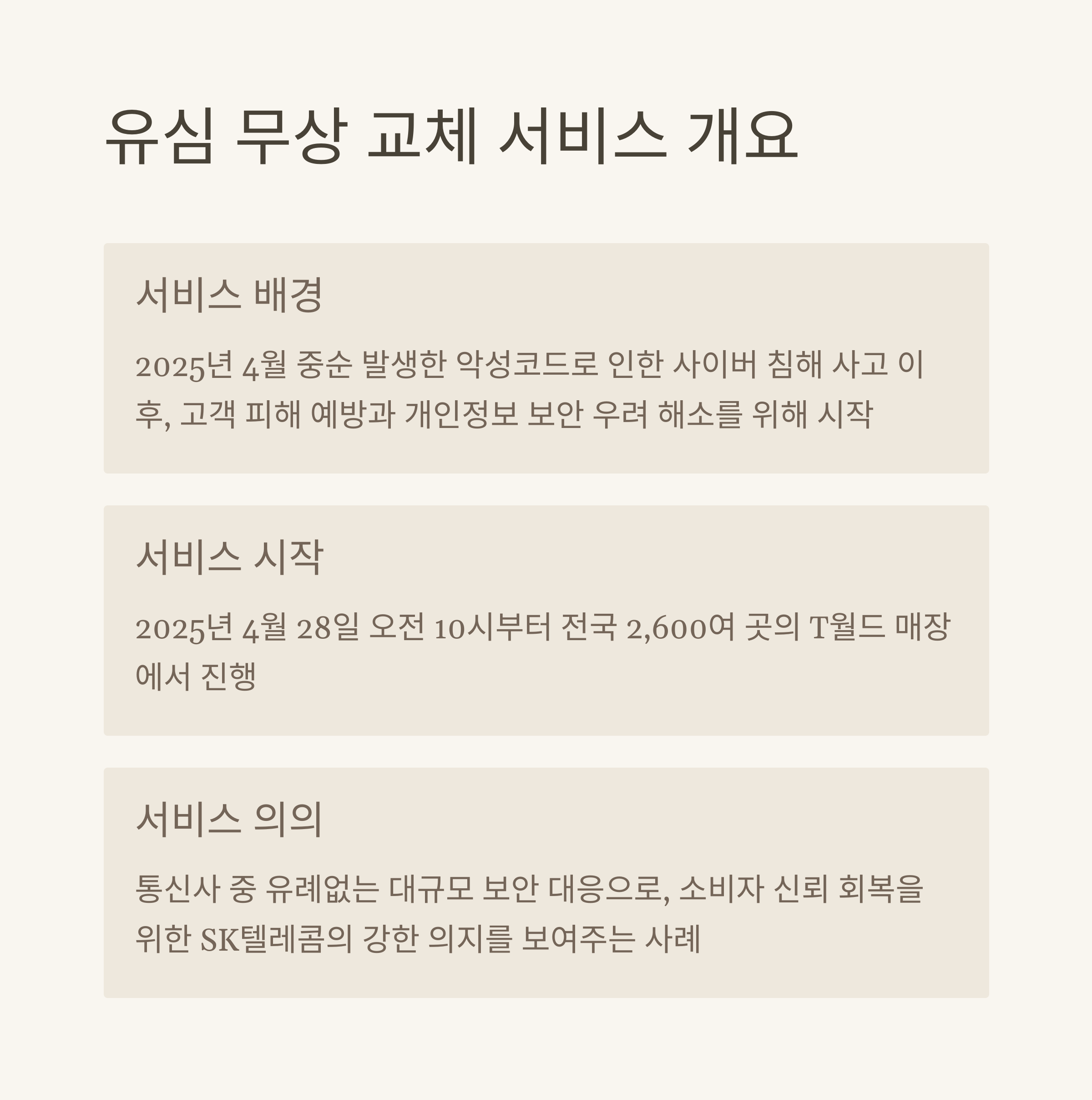 SK텔레콤의 유심 무상 교체 서비스는 단순한 교체가 아니라 개인정보 보호를 위한 실질적 안전망입니다.