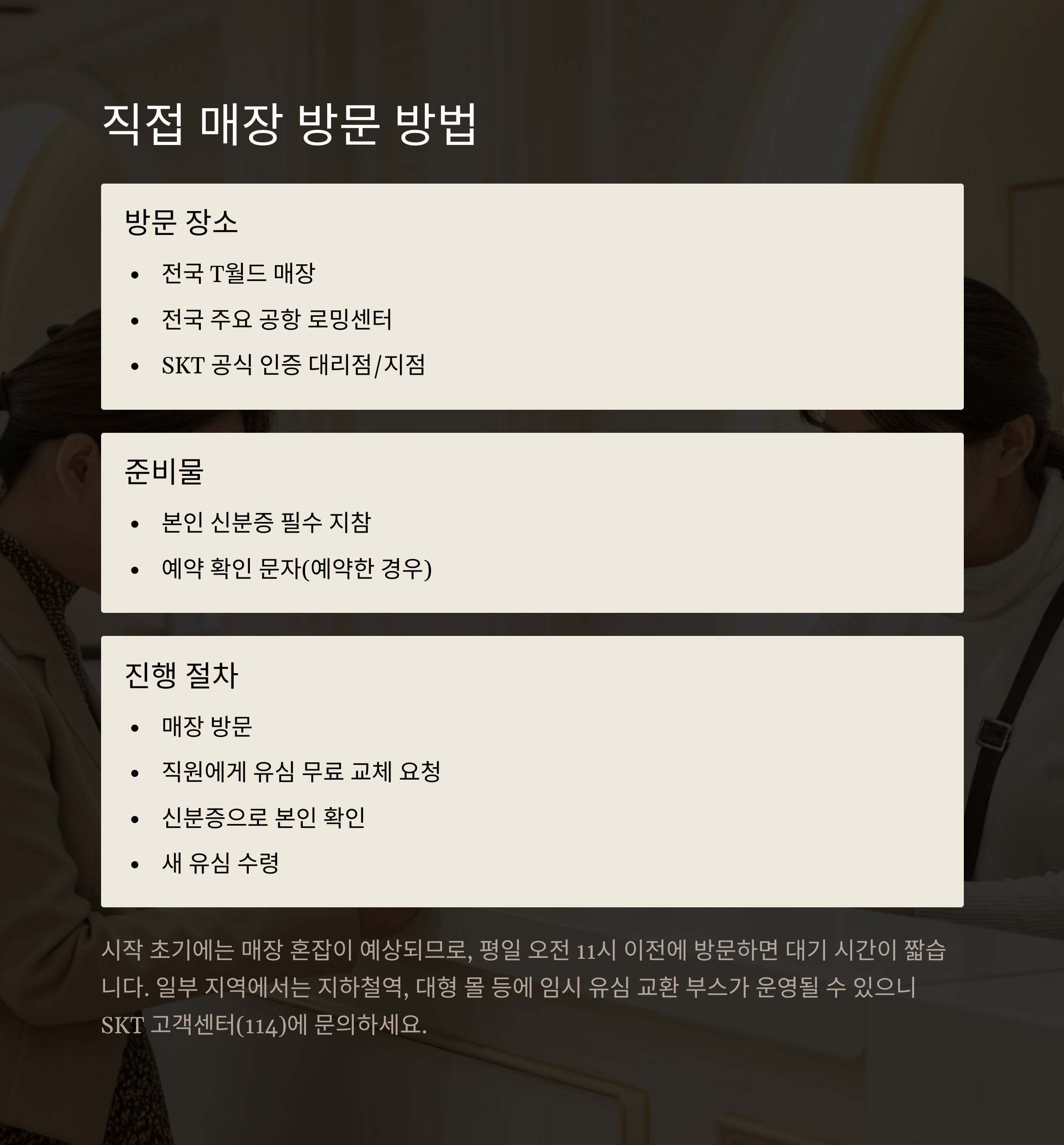 | 준비물 | 새 유심 영수증, 기존 유심, 신분증, 계좌번호 |