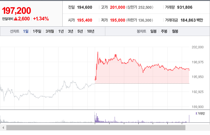 현재 셀트리온의 주가는 197,200원으로, 전일 대비 변화가 없는 상태입니다. 주주 현황을 살펴보면, 셀트리온홀딩스와 86명의 개인이 총 28.29%의 지분을 보유하고 있습니다. 셀트리온은 바이오 기업으로, 현재 주가는 197,200원입니다. 이 회사의 시가 총액은 약 42조 7,966억 원이며, 발행된 주식 수는 217,021,190주입니다. 외국인 투자자의 보유 비중은 22.70%로 나타났으며, 장중 거래량은 942,857주에 달했습니다. 또한, 셀트리온의 매출액은 7,370억 원에 이릅니다.