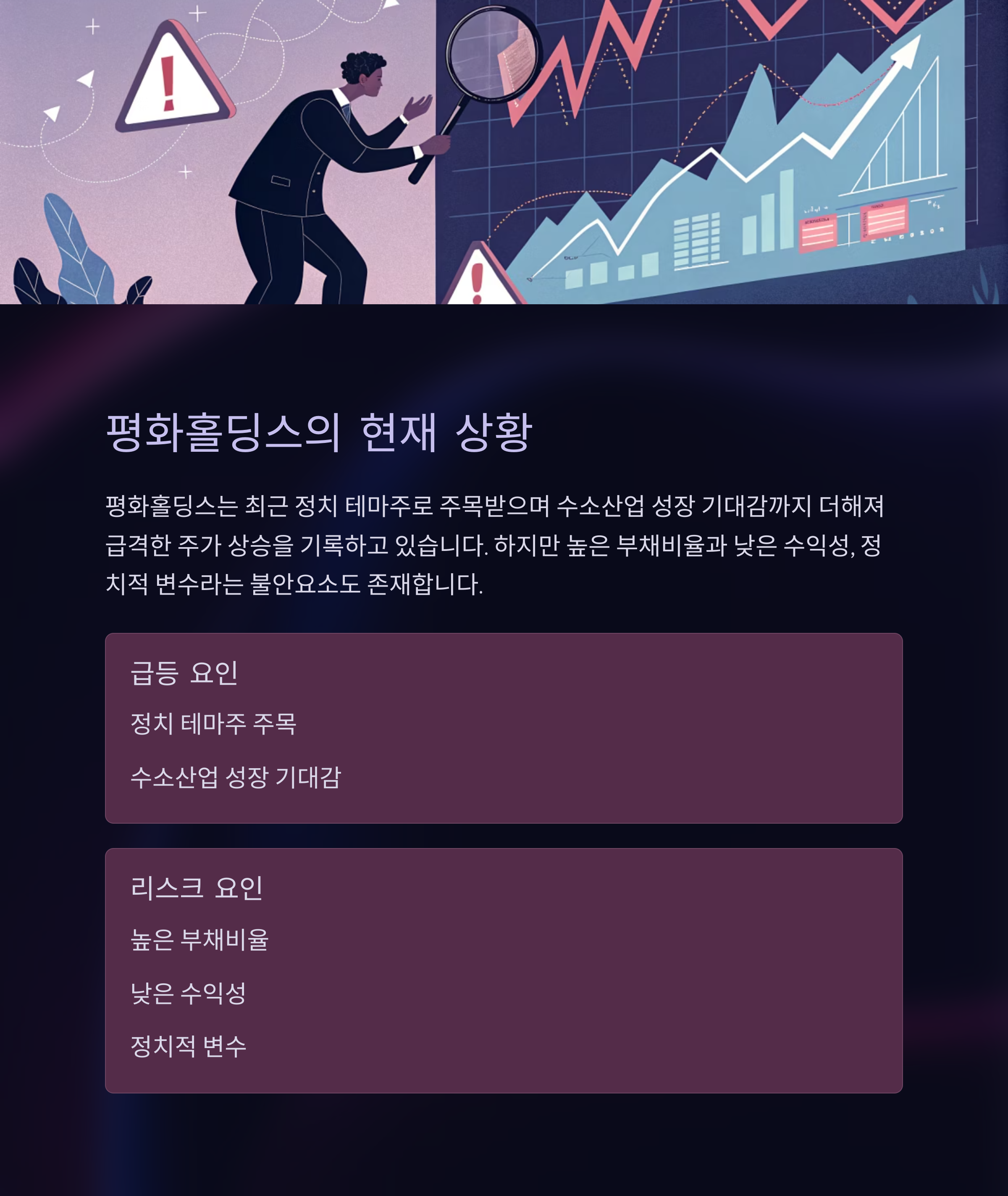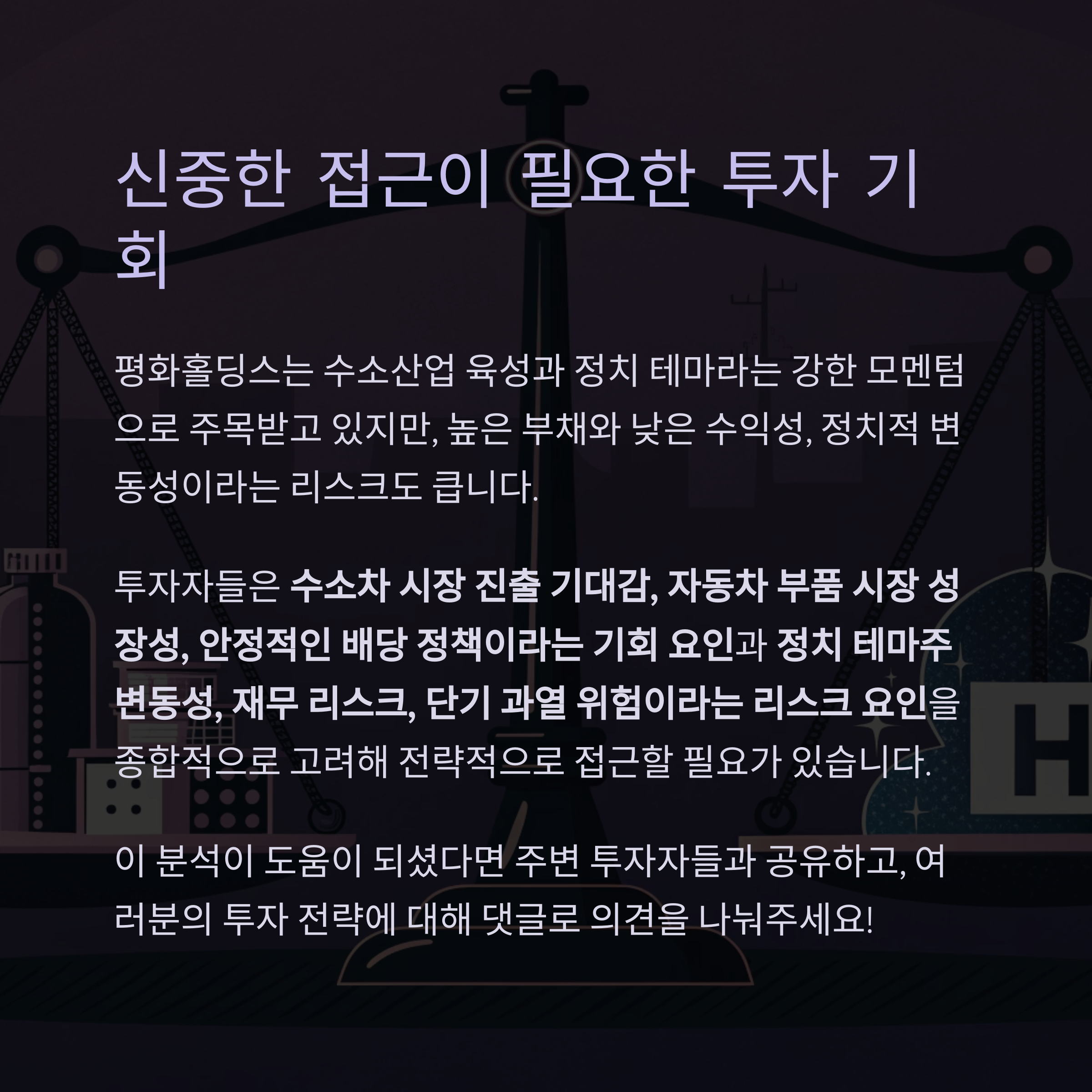 정치적 변수라는 불안요소도 존재합니다. 이 글에서는 평화홀딩스의 성장 동력과