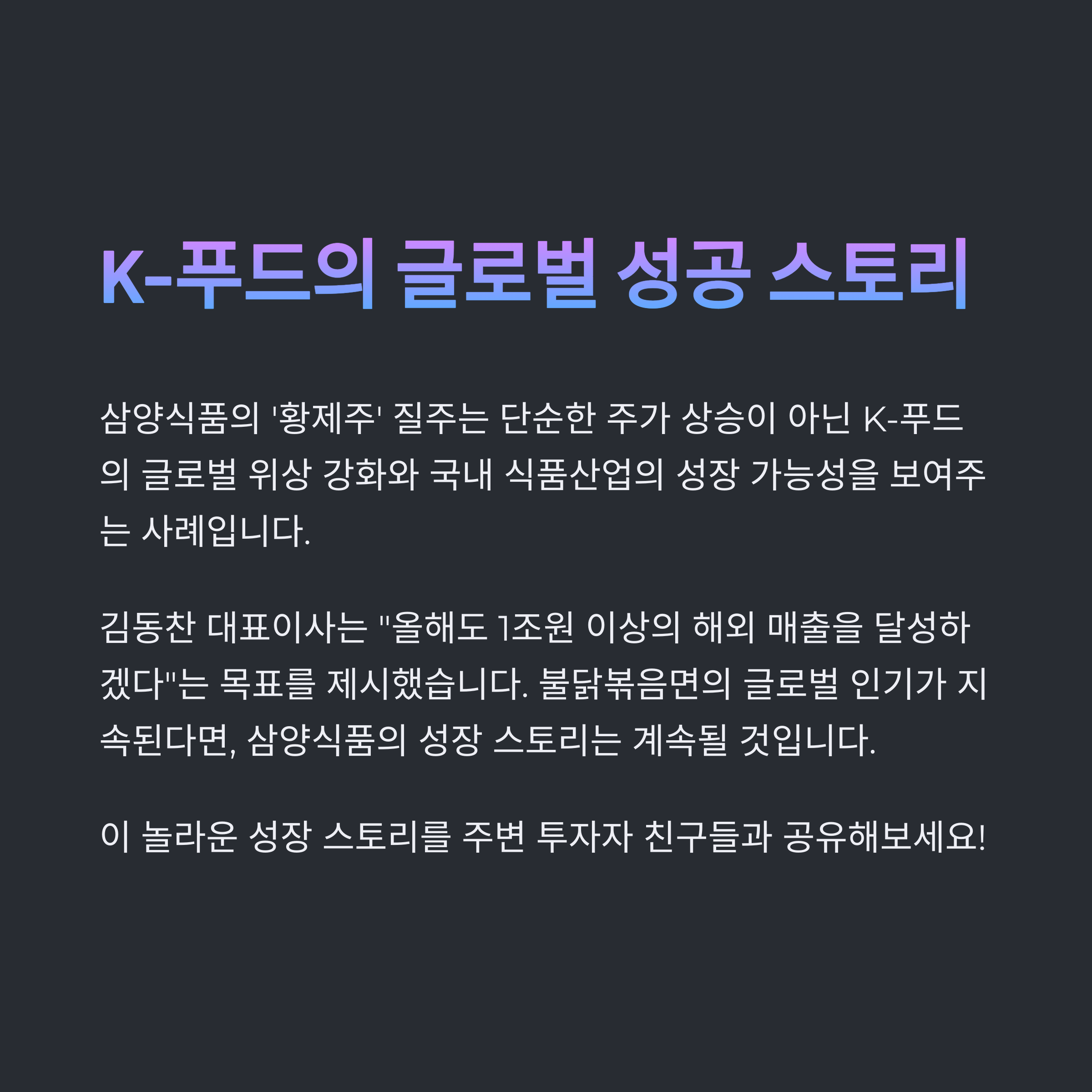 결론: '불닭 열풍'이 끝나기 전까지, 삼양의 질주는 계속된다
