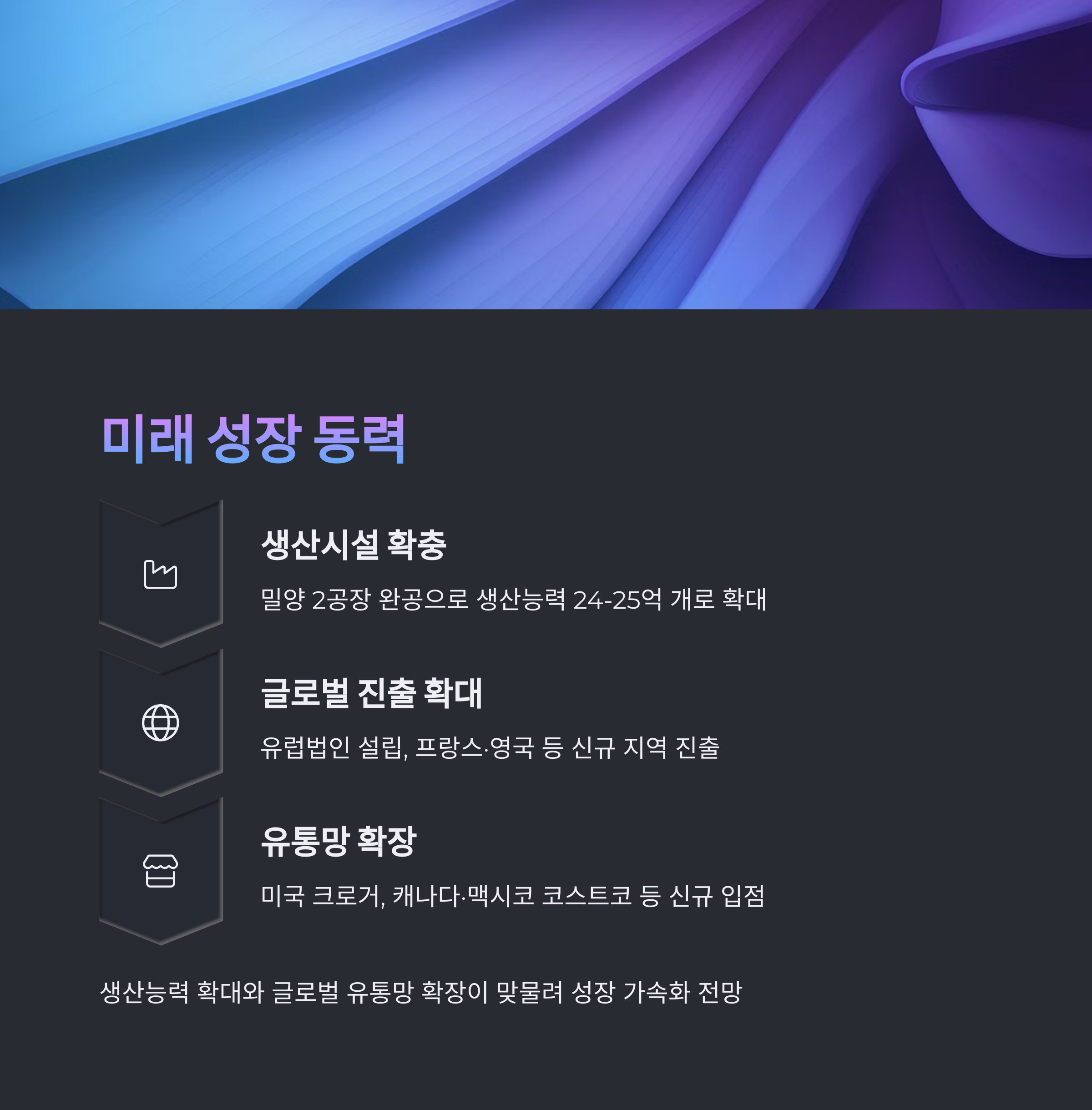 생산능력 확대와 유럽·미국 등지의 글로벌 전략 가속화가 맞물리며 장기적인 성장세가 기대되고 있습니다.
