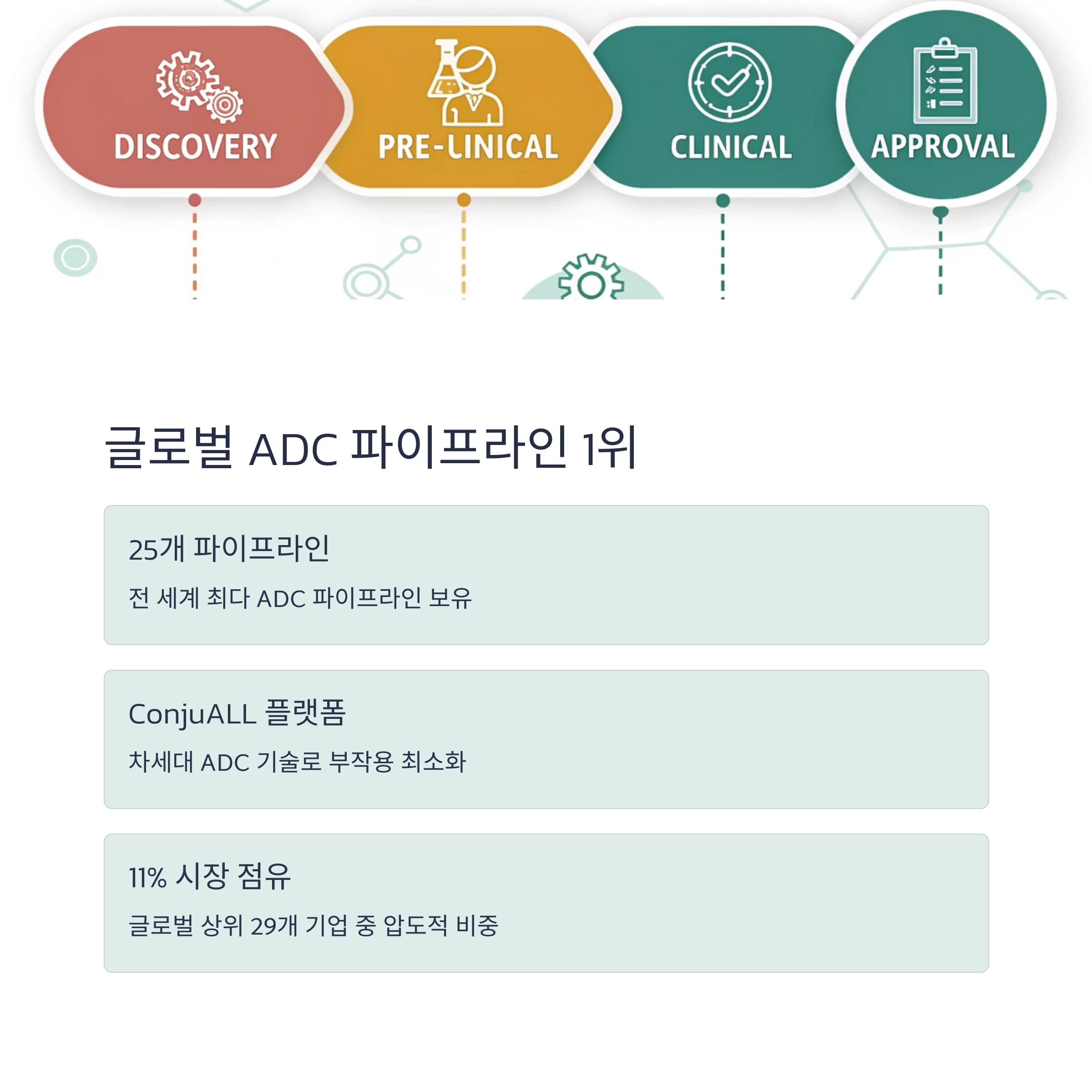 이는 글로벌 전체 ADC 파이프라인 중 약 11%를 차지하는 규모로 압도적인 기술 축적을 의미합니다.