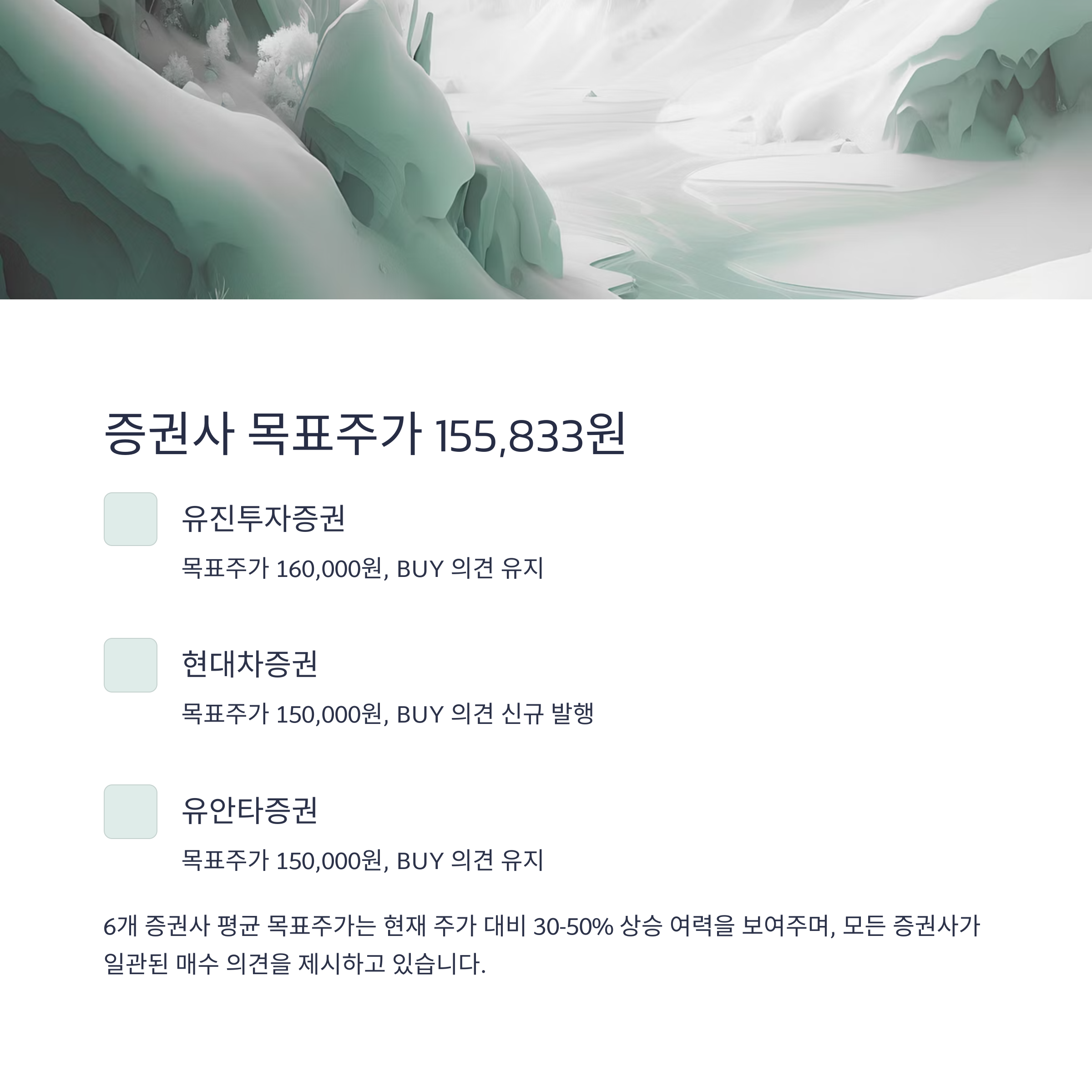 유진투자, 유안타, 현대차증권 등 주요 리서치 기관은 모두 'BUY' 의견을 유지 중입니다.