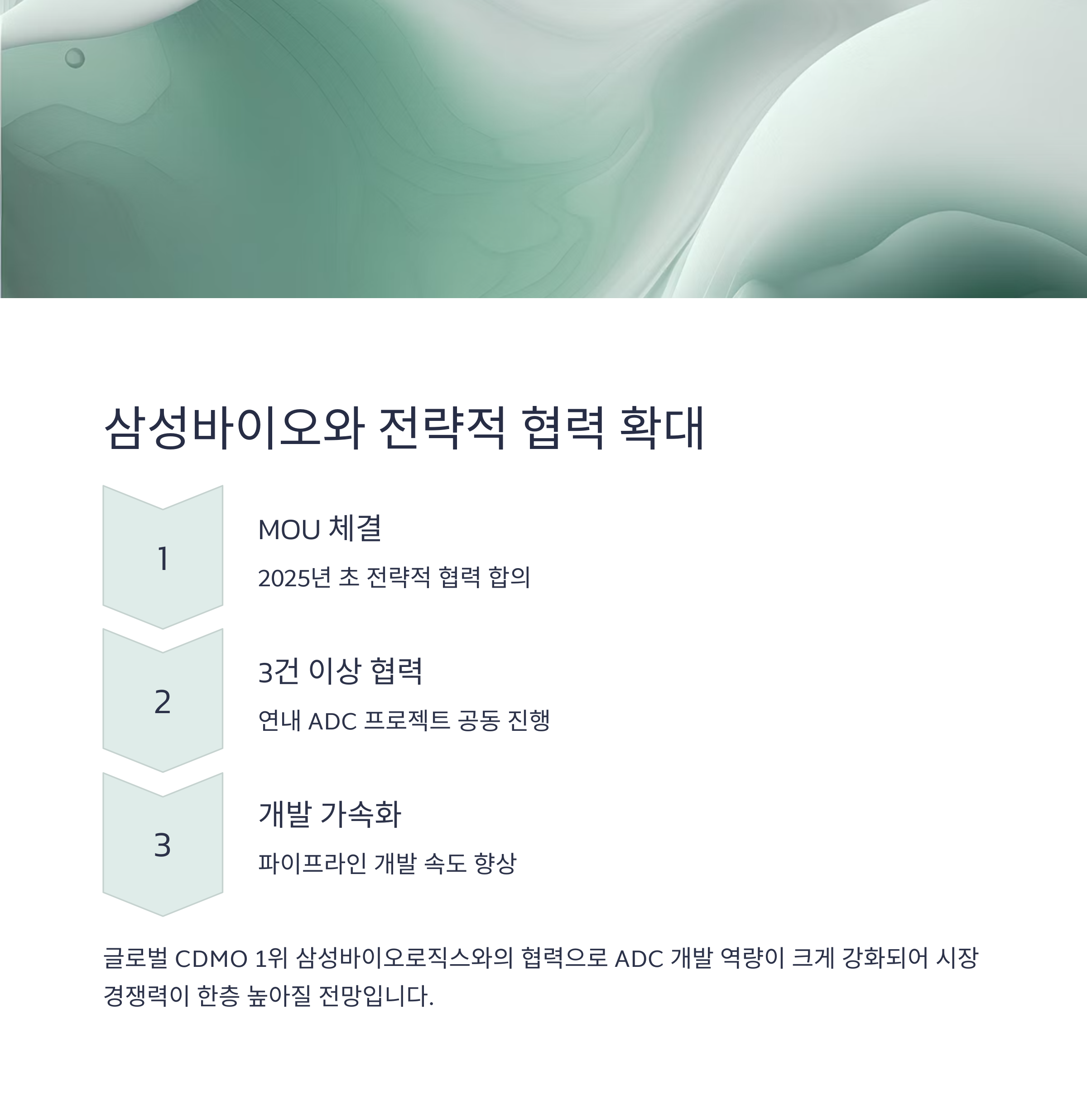특히 얀센과의 협업 및 삼성바이오로직스와의 ADC 생산 파트너십은 중장기 성장 동력 확보의 핵심 축으로 분석됩니다.