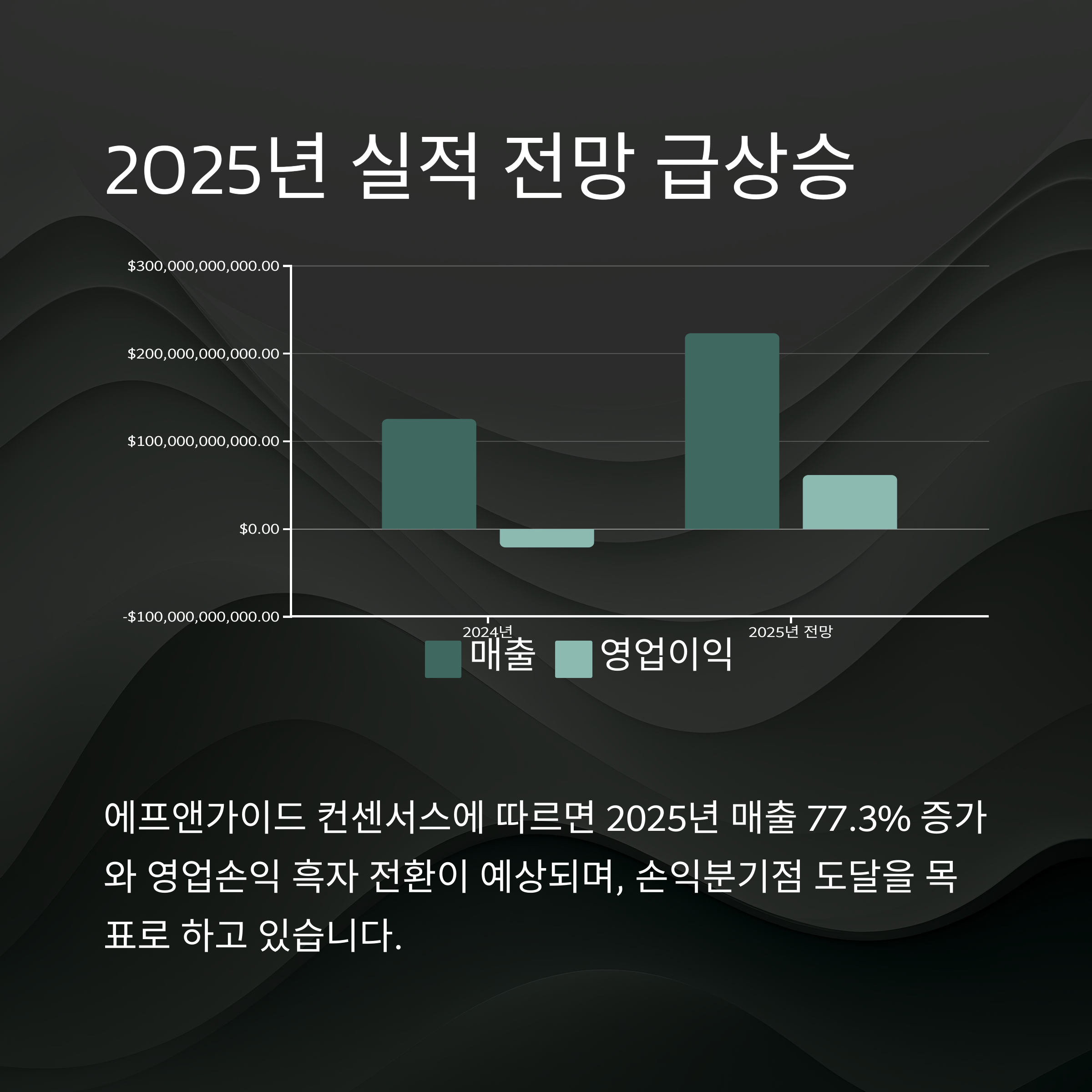 2025년에는 2,232억 원 매출과 611억 원의 영업이익이 예상되며 흑자 전환이 본격화될 전망입니다.