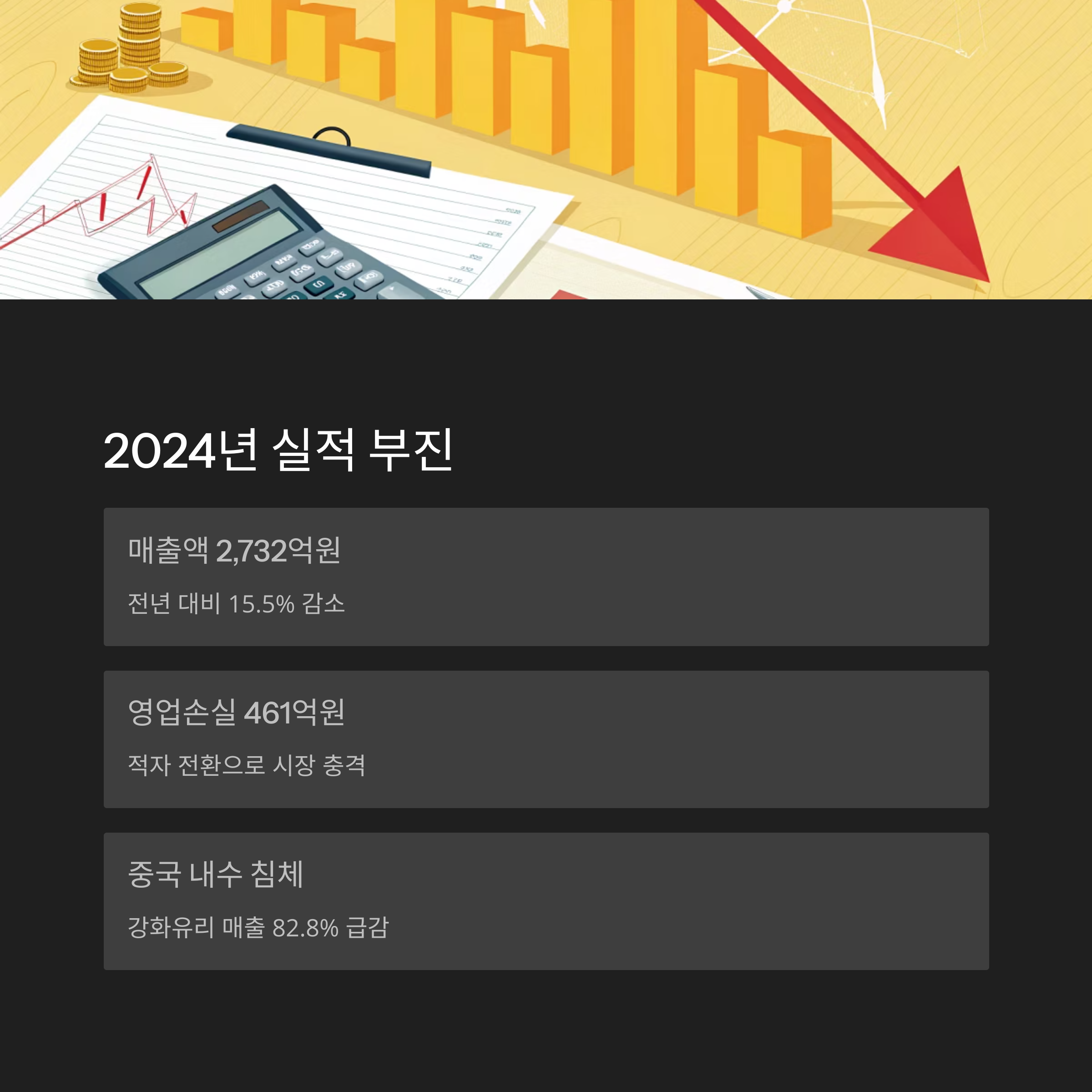 대규모 적자 기록 이후 투자자 신뢰 회복이 더뎌지고 있습니다. - 중국 경기 및 스마트폰 시장 부진