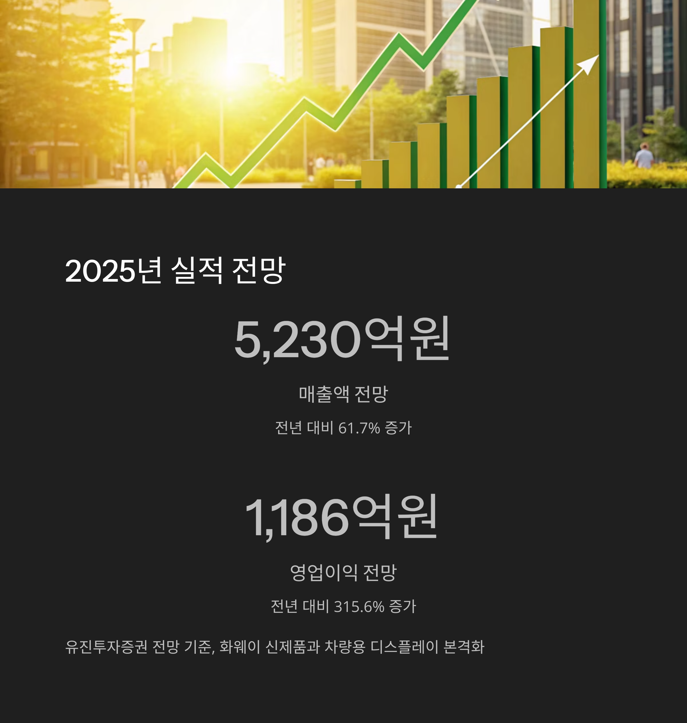 화웨이 공급 확대와 전기차용 디스플레이 수주에 힘입어 실적 개선 기대감이 커지고 있으나,
