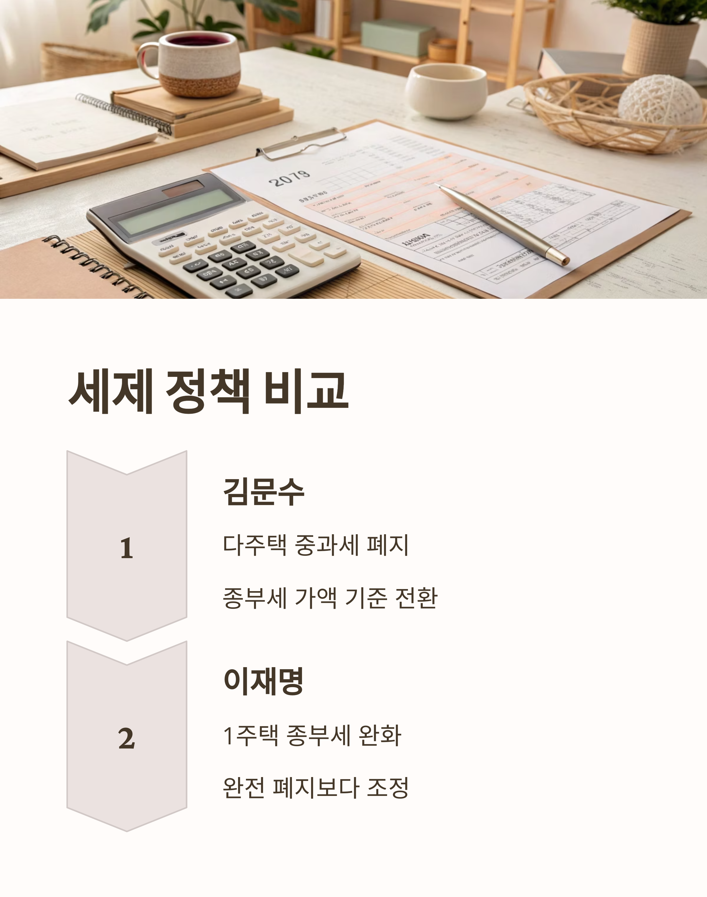 김문수 후보는 세금 부담을 줄여 민간 투자와 자산 유입을 촉진하는 방향입니다. 반면, 이재명 후보는 세금을 완전히 없애지는 않되 실수요자는 보호하고 투기는 억제한다는 전략입니다.