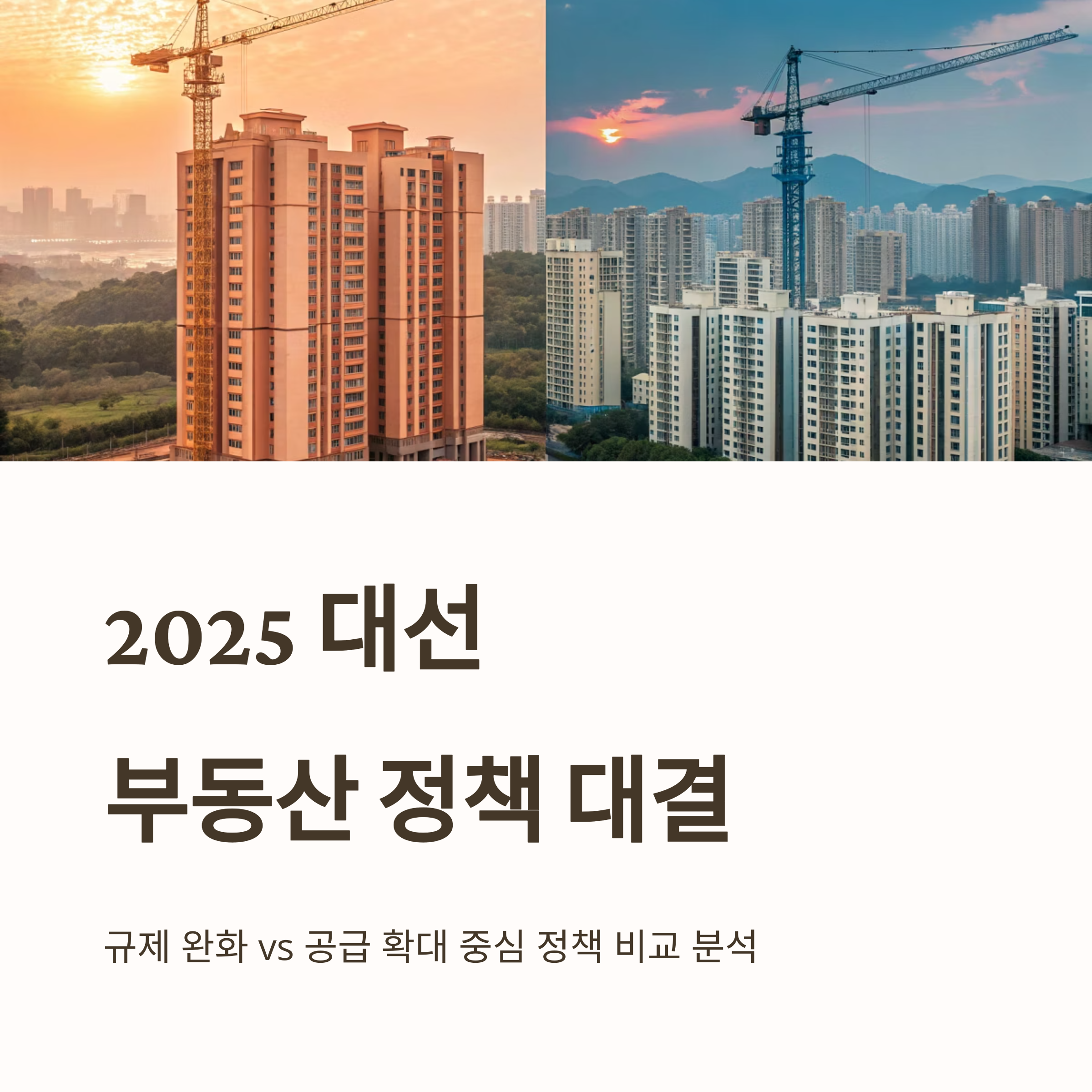 2025년 대선에서 부동산 정책은 최대 쟁점 중 하나입니다. 김문수와 이재명 후보는 모두 주택 공급 확대를 약속하고 있으나, 접근 방식은 매우 다릅니다. 규제 완화 중심의 김문수 후보와 균형 잡힌 공급 중심의 이재명 후보의 정책 차이를 분석해보겠습니다.