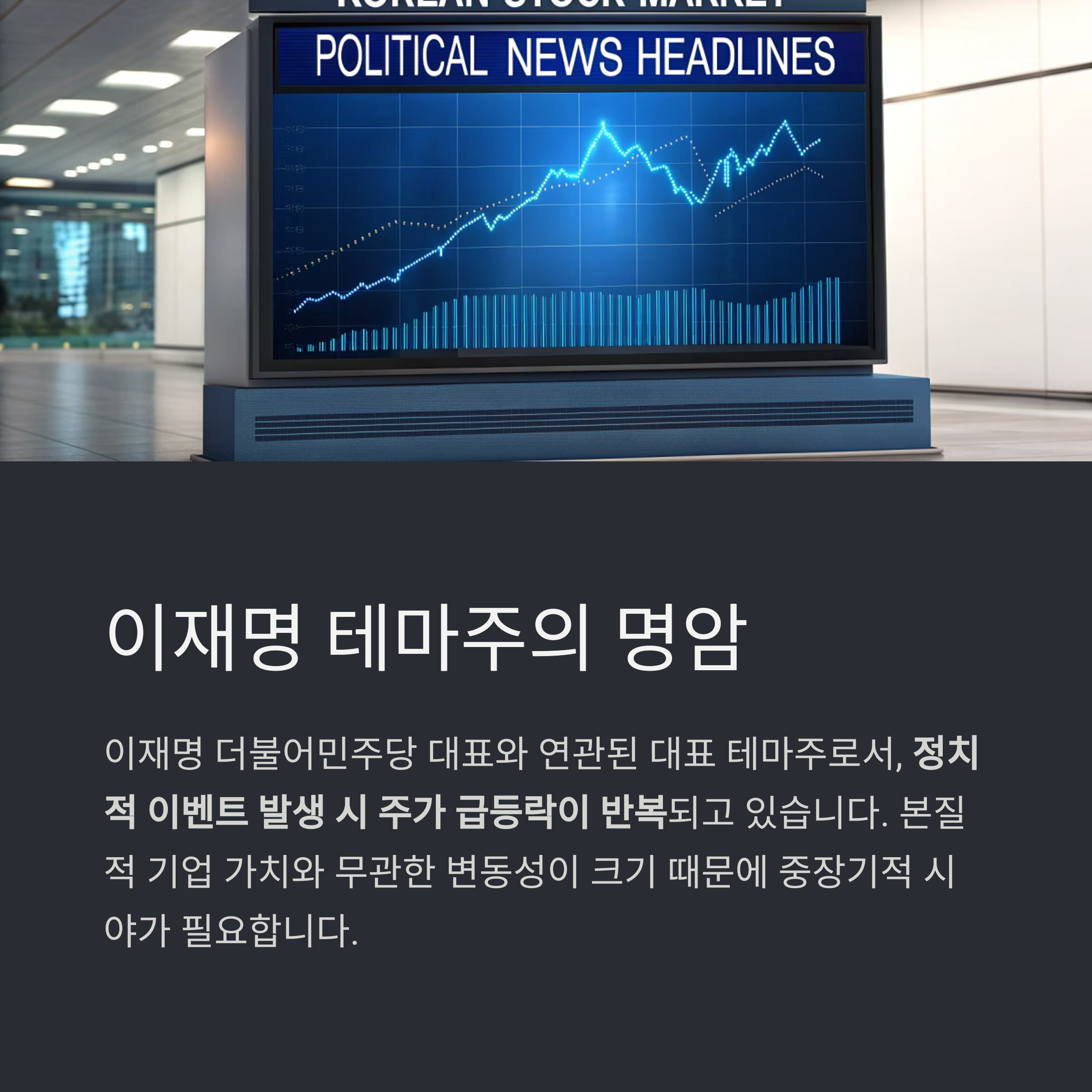 정치적 테마주라는 이중적 성격이 투자자들에게 신중한 접근을 요구합니다