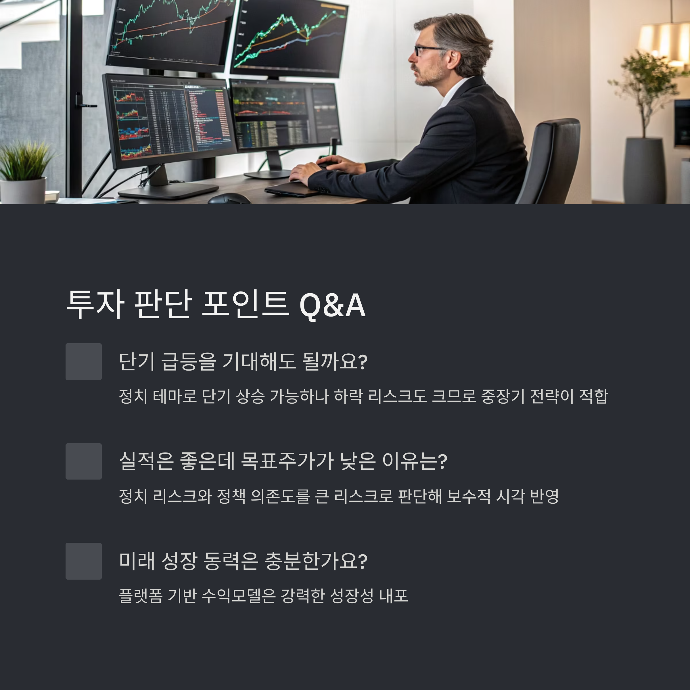 하지만 정치적 리스크와 정책 의존도라는 구조적 불안 요소가 공존하기 때문에