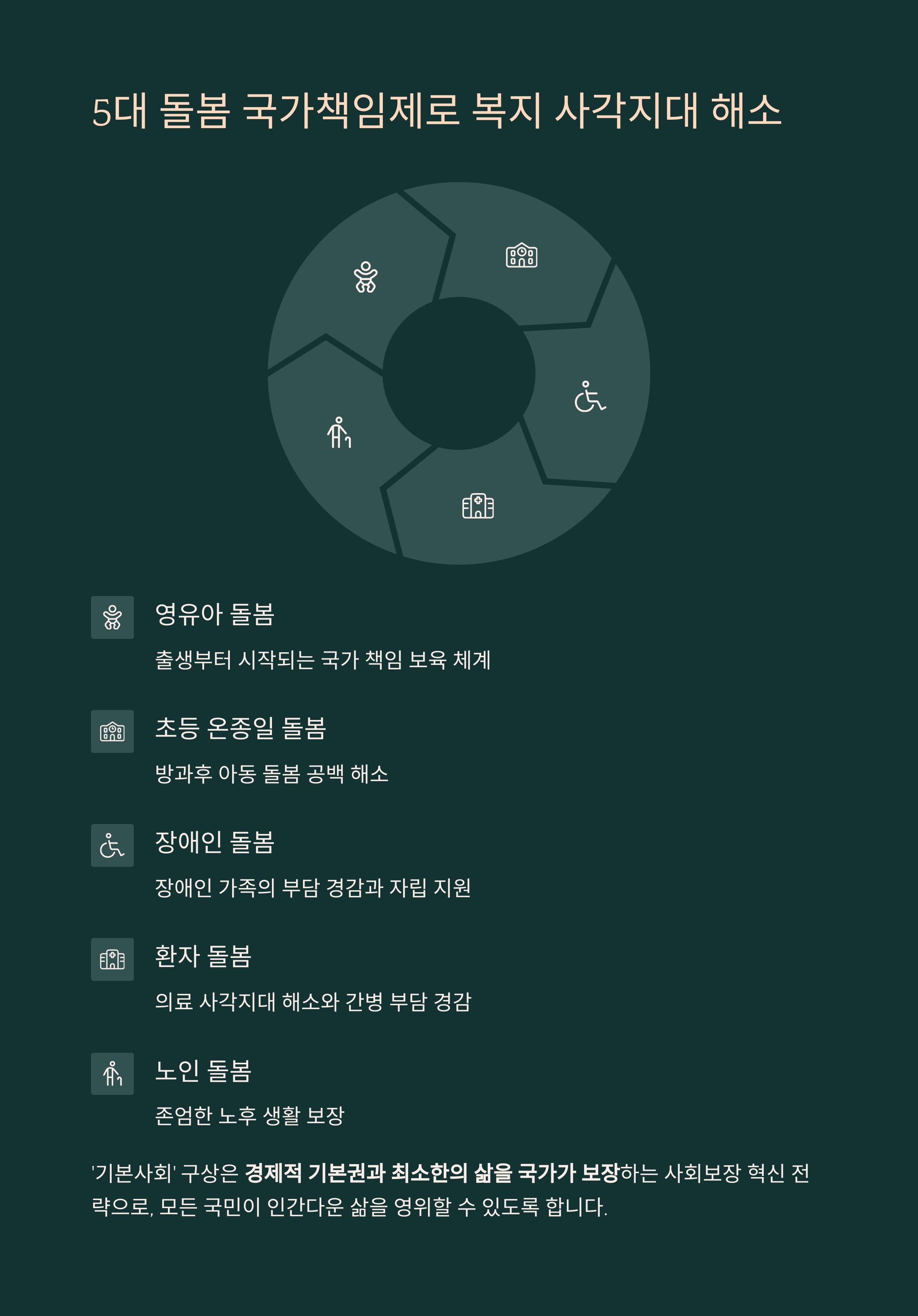 | 복지 | 5대 돌봄 국가책임제 | 생애주기별 돌봄 강화 |