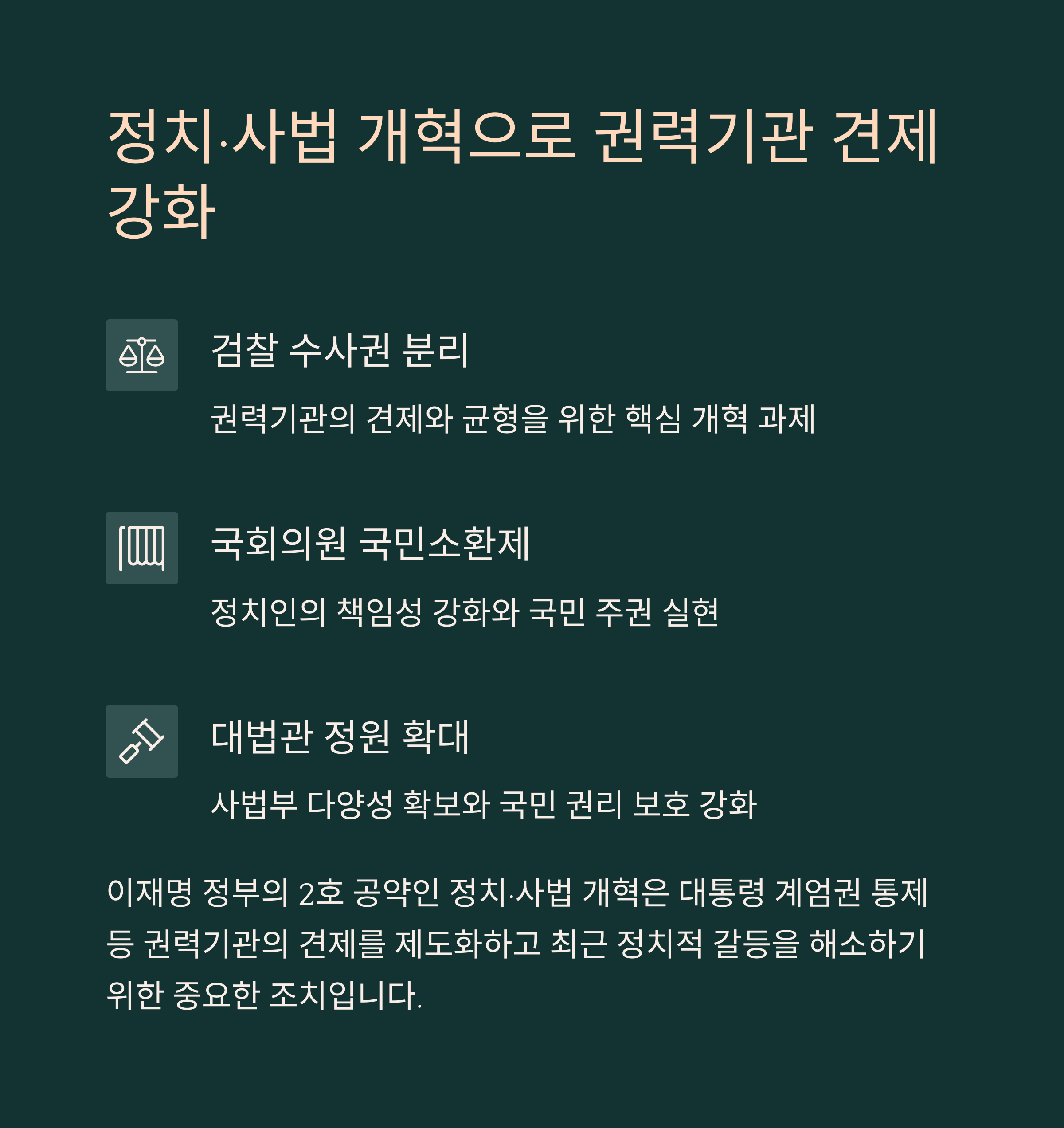 정치·사법 개혁은 이재명 정부가 내세운 2호 공약입니다.