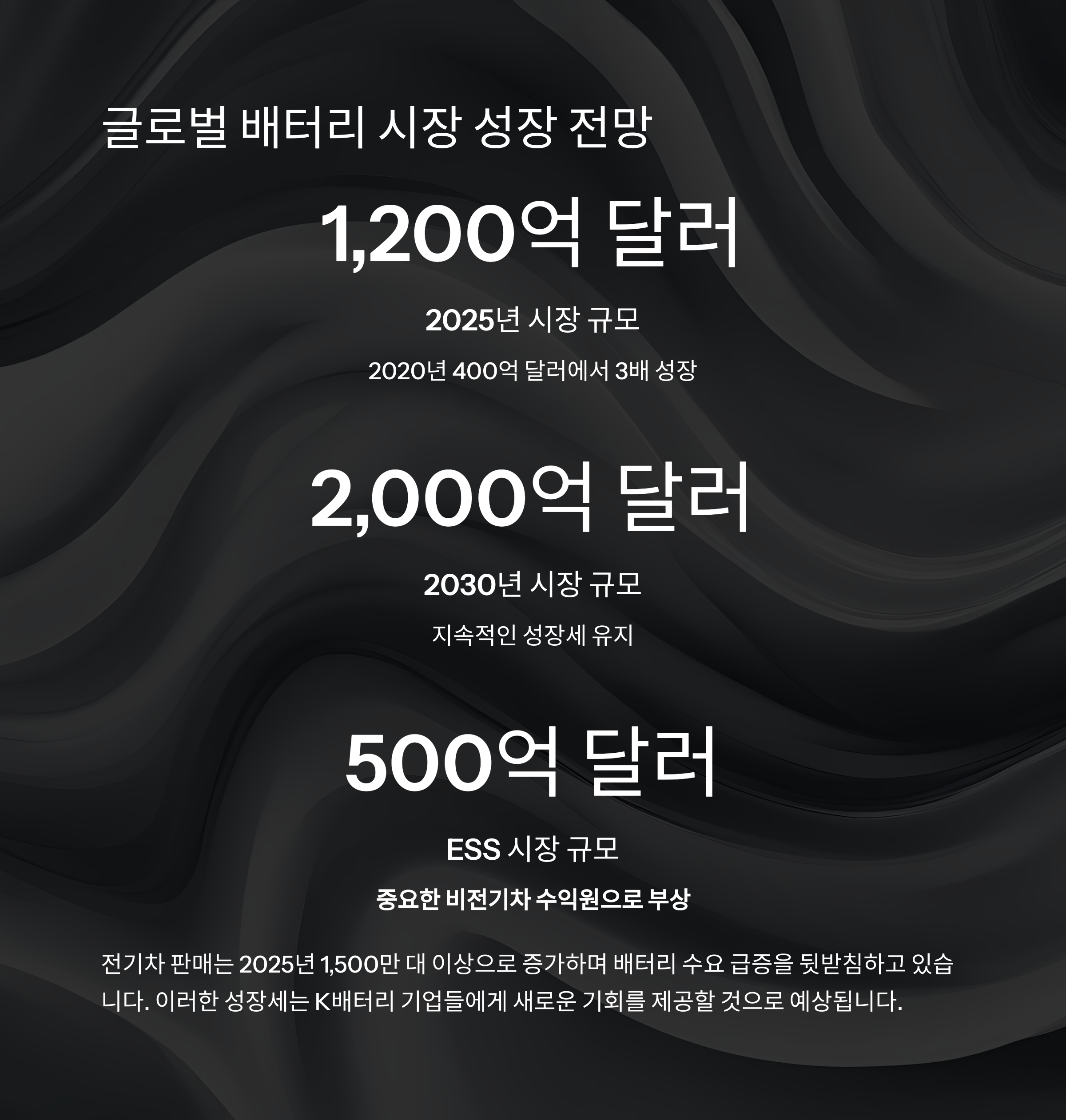 2025년 매출 50조 원 이상, 글로벌 점유율 40% 달성이 기대되는 산업입니다.