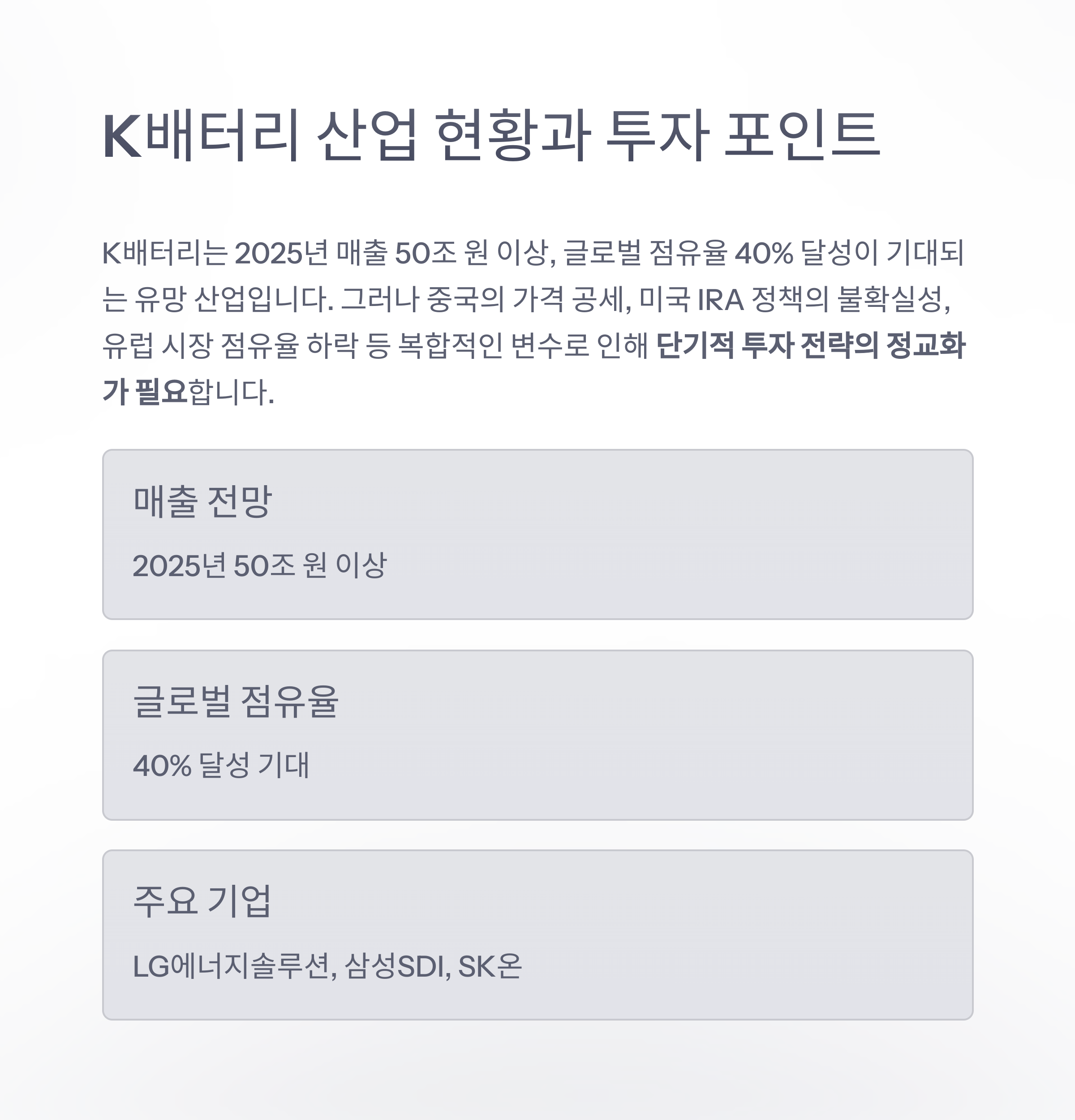 2025년, K배터리 관련주 투자 전략과 시장 전망