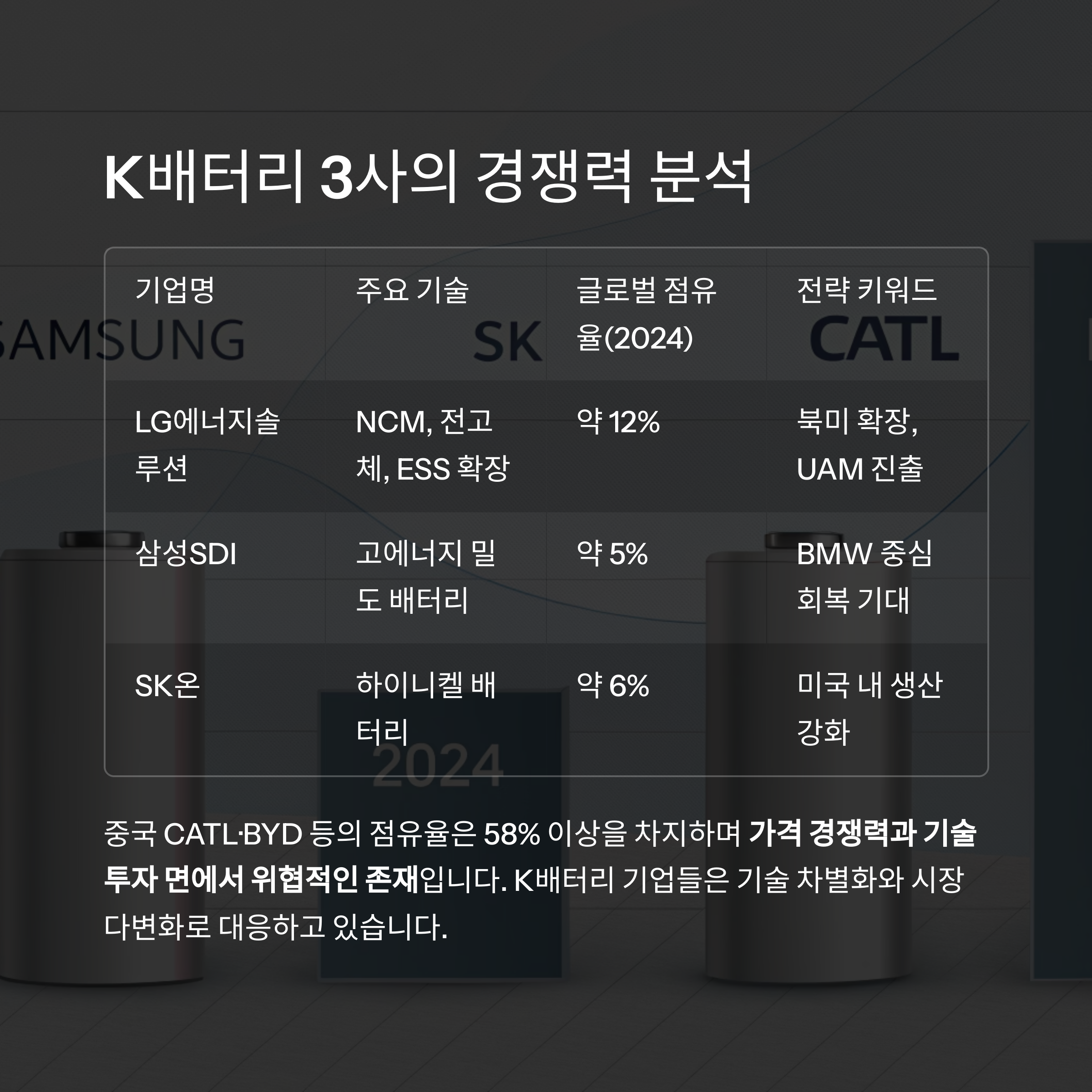 | SK온 | 하이니켈 배터리 | 약 6% | 미국 내 생산 강화 |