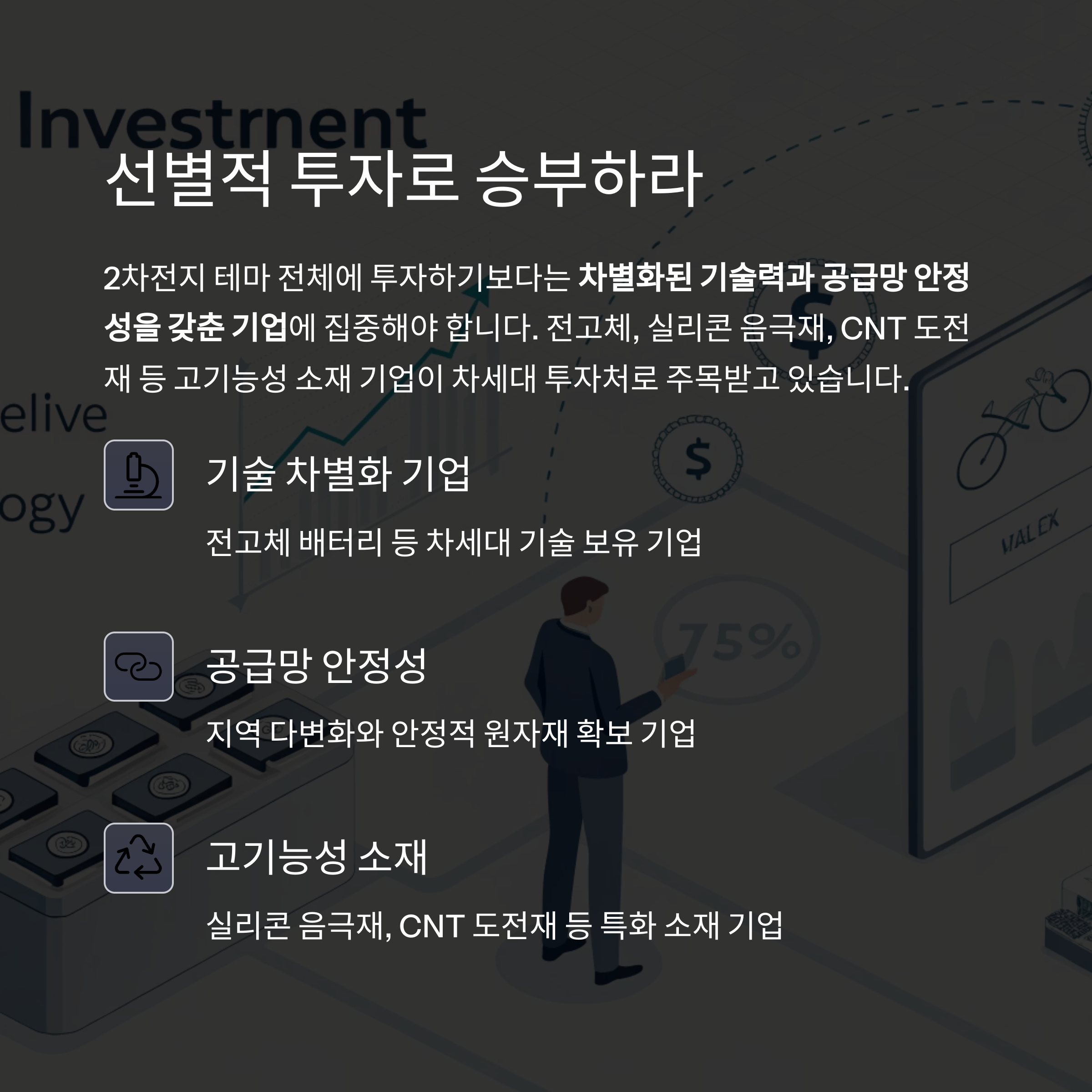 차별화된 기술력과 공급망 안정성을 갖춘 기업에 집중해야 합니다.