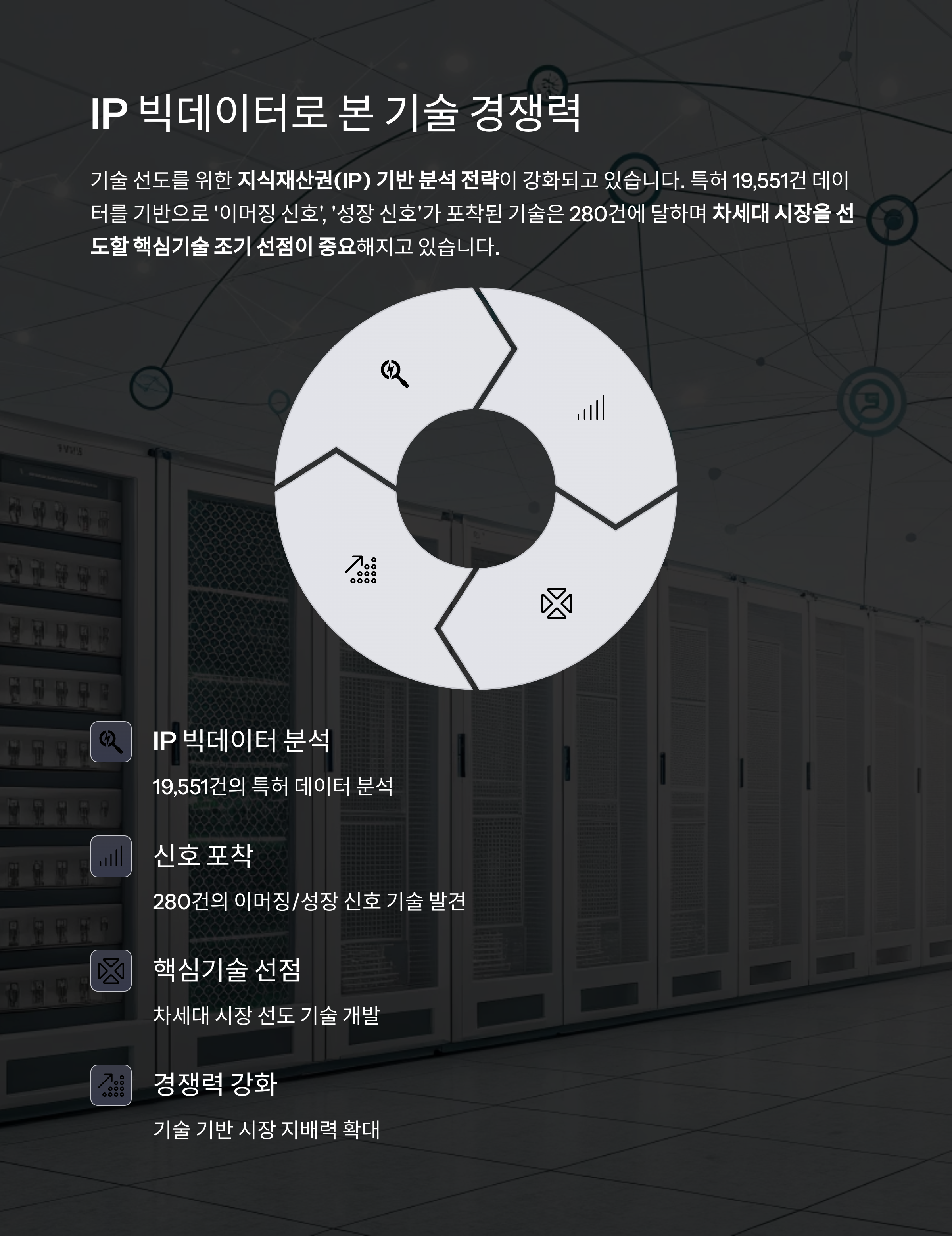기술 선도를 위한 지식재산권(IP) 기반 분석 전략이 강화되고 있습니다.