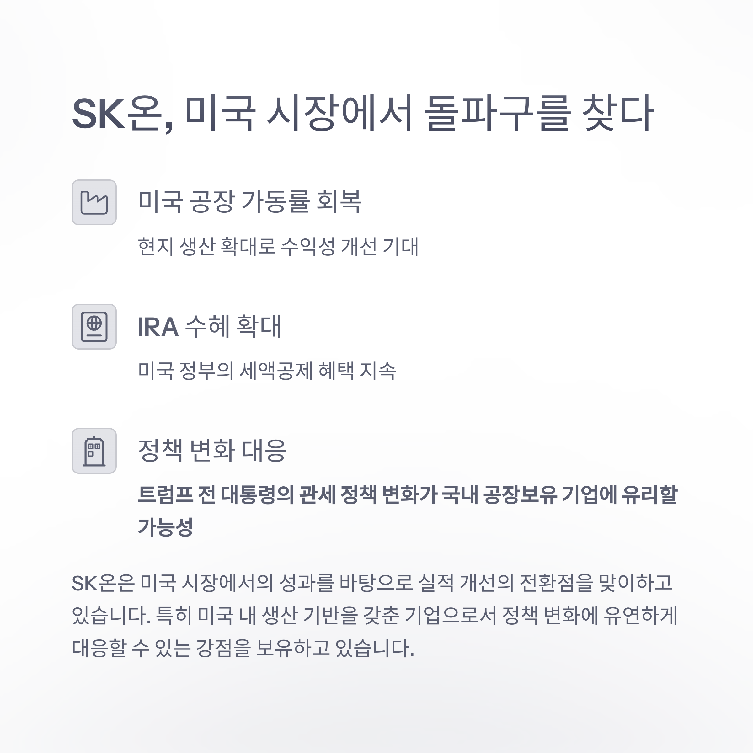 미국 공장 가동률 회복과 인플레이션감축법(IRA) 수혜로