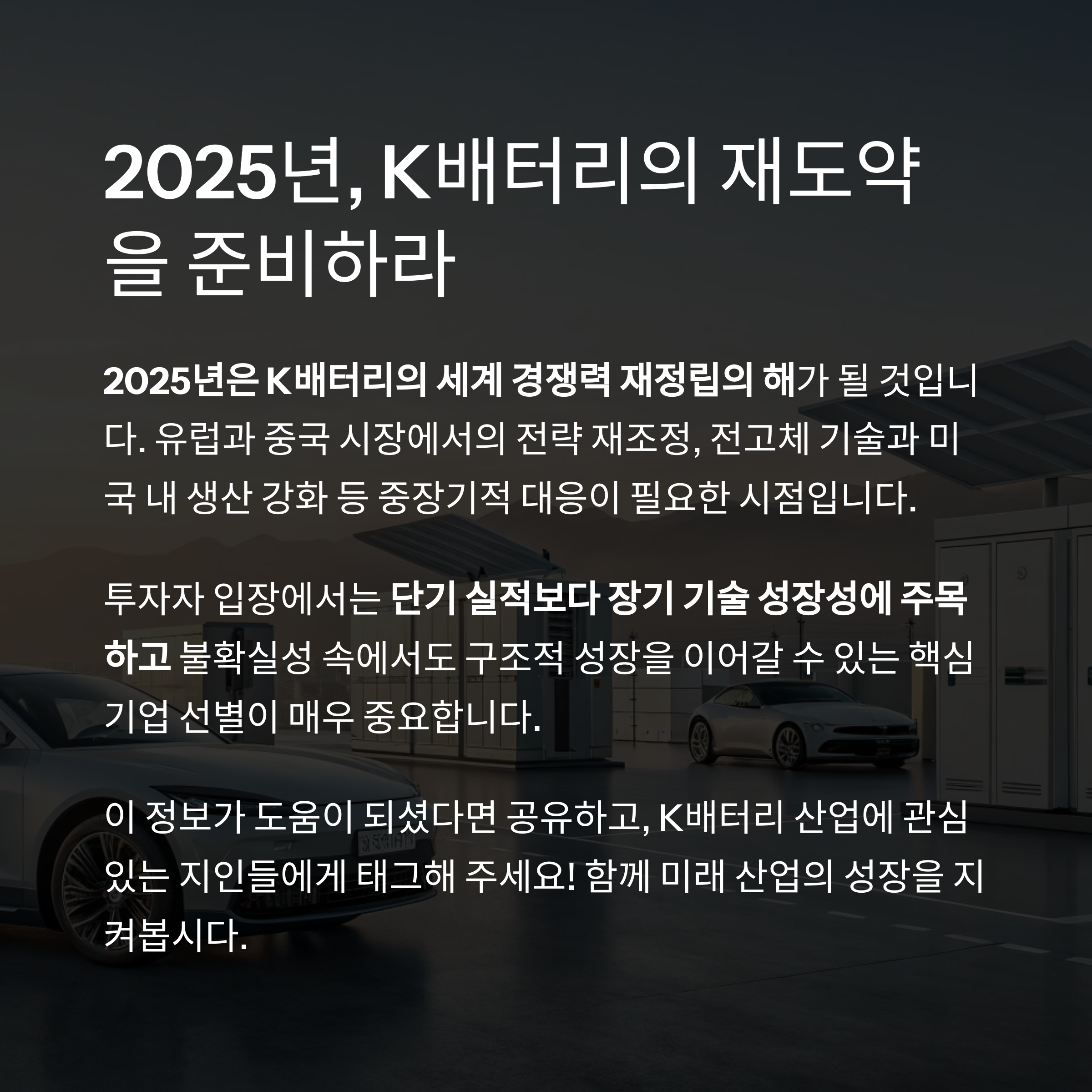 2025년은 K배터리의 세계 경쟁력 재정립의 해가 될 것입니다.