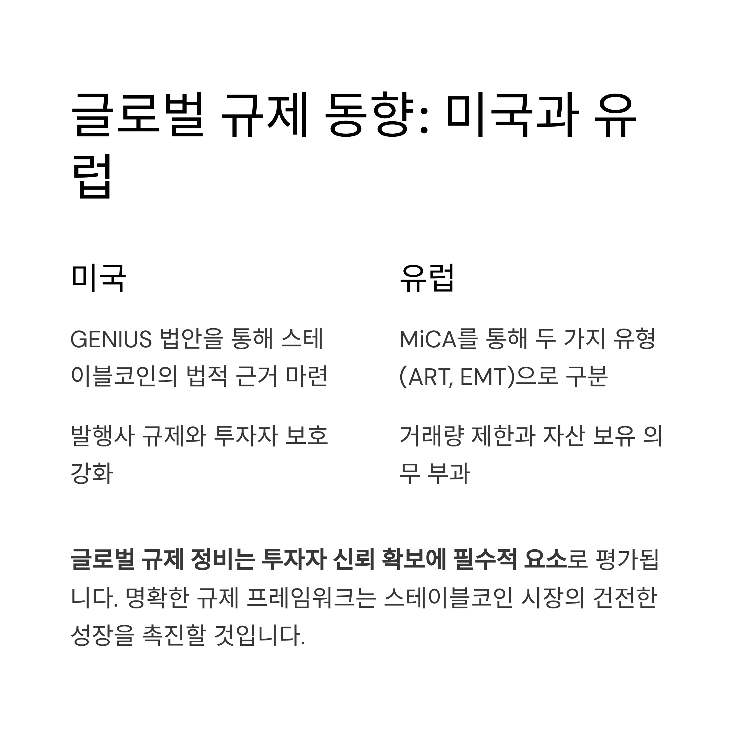 글로벌 규제 정비는 투자자 신뢰 확보에 필수적 요소로 평가됩니다.