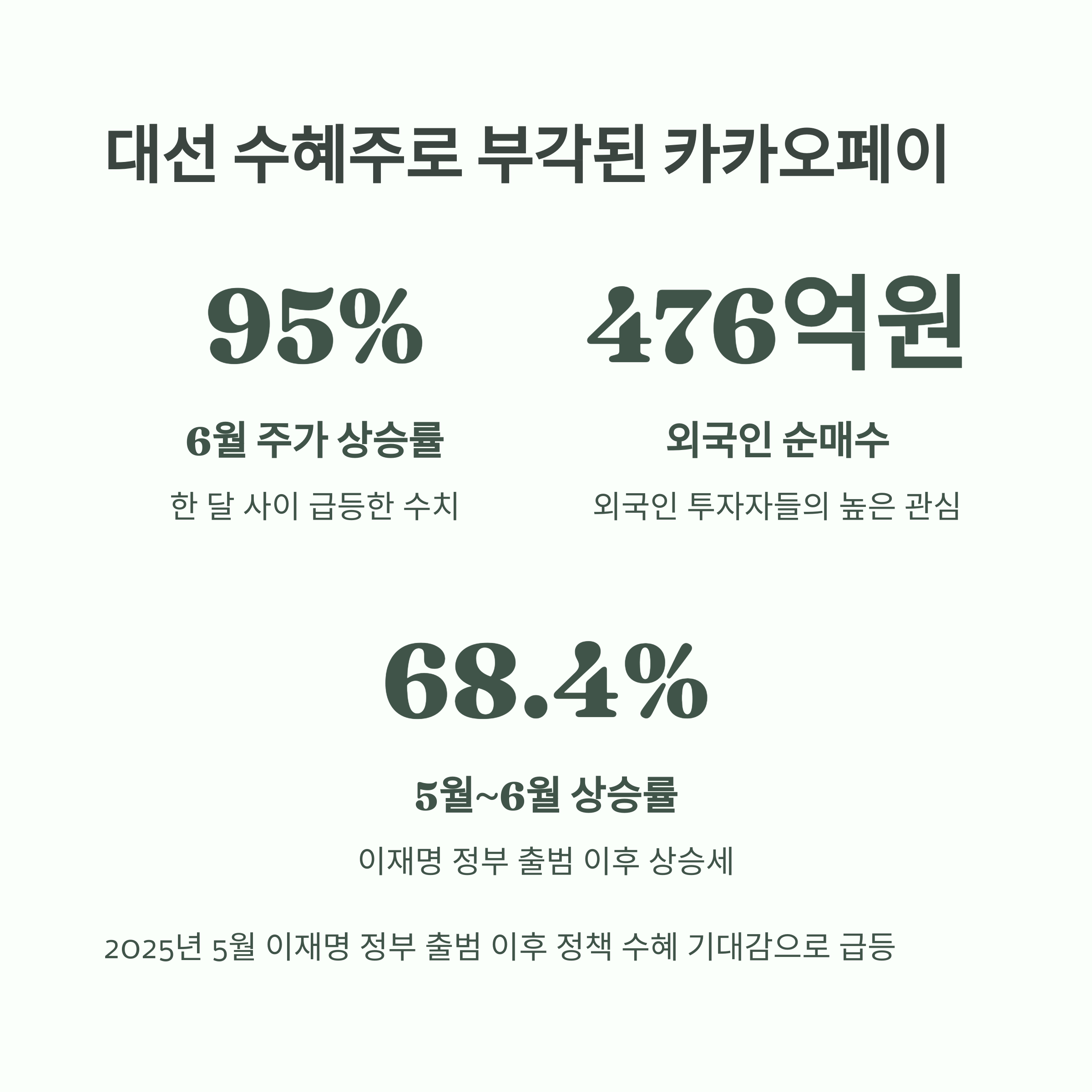 2025년 5월부터 시작된 이재명 정부의 정책 방향성과 맞물려, 카카오페이는 정책 수혜 기대감 속에 급등했습니다.