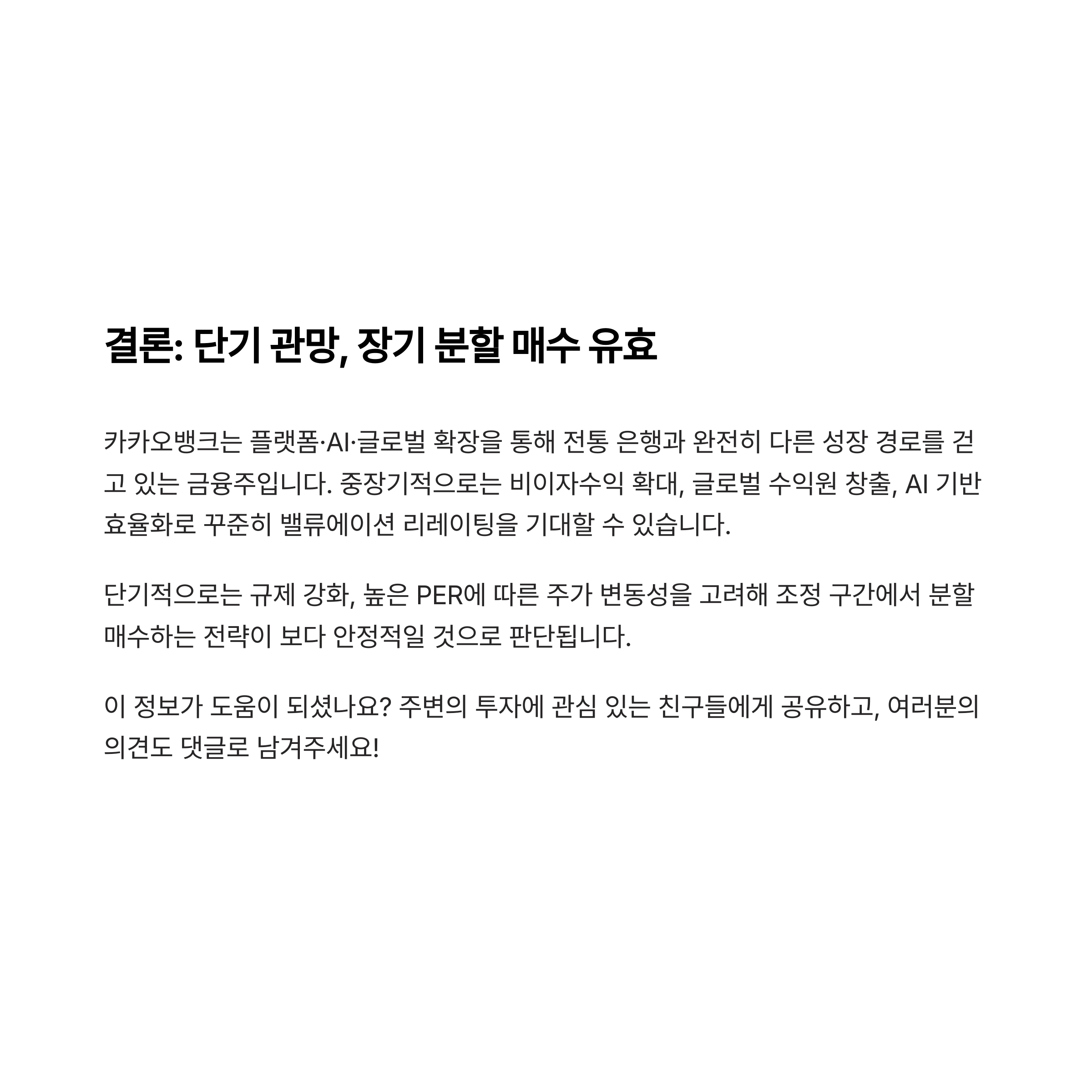 결론: 단기 관망, 장기 분할 매수 유효