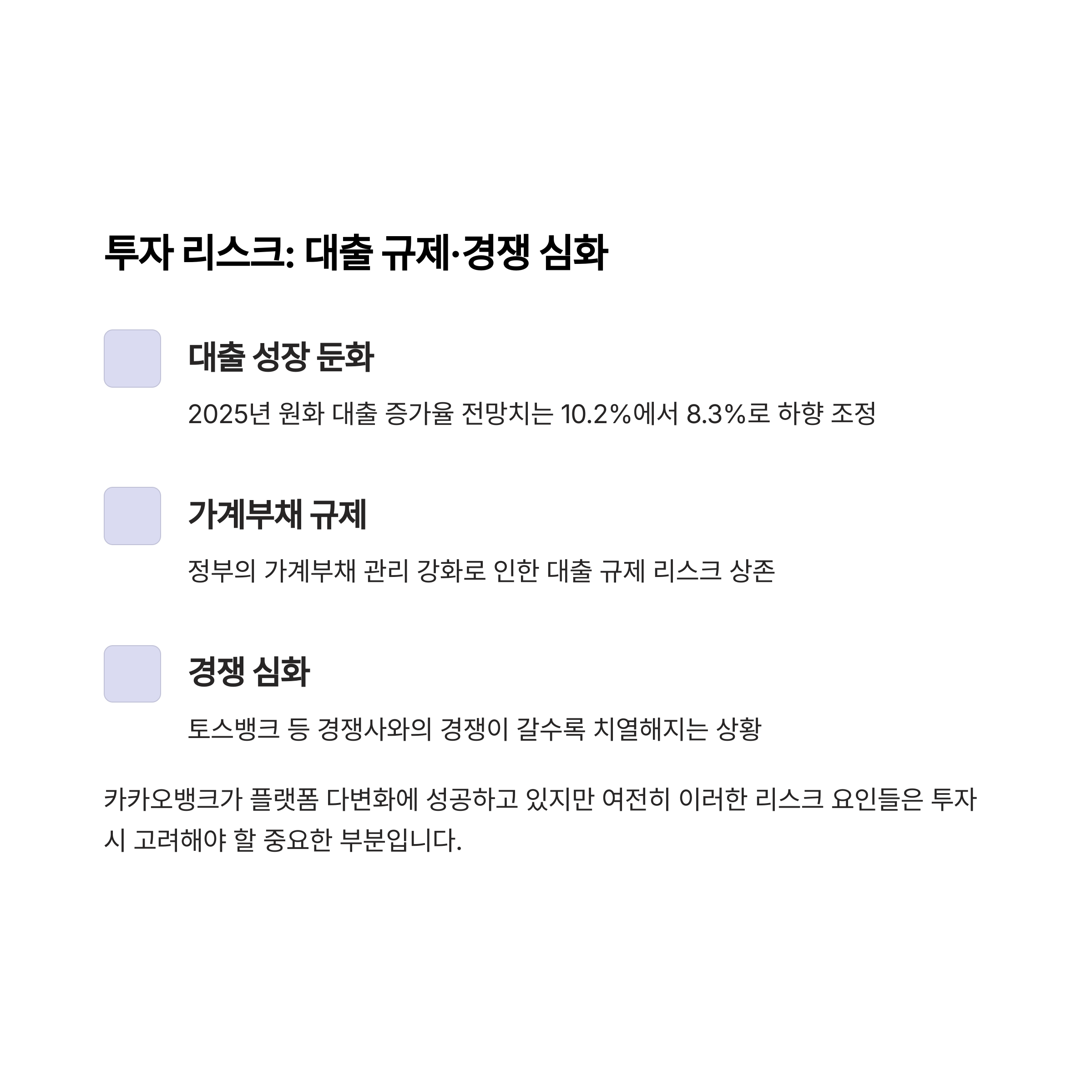 투자 리스크: 대출 규제·경쟁 심화