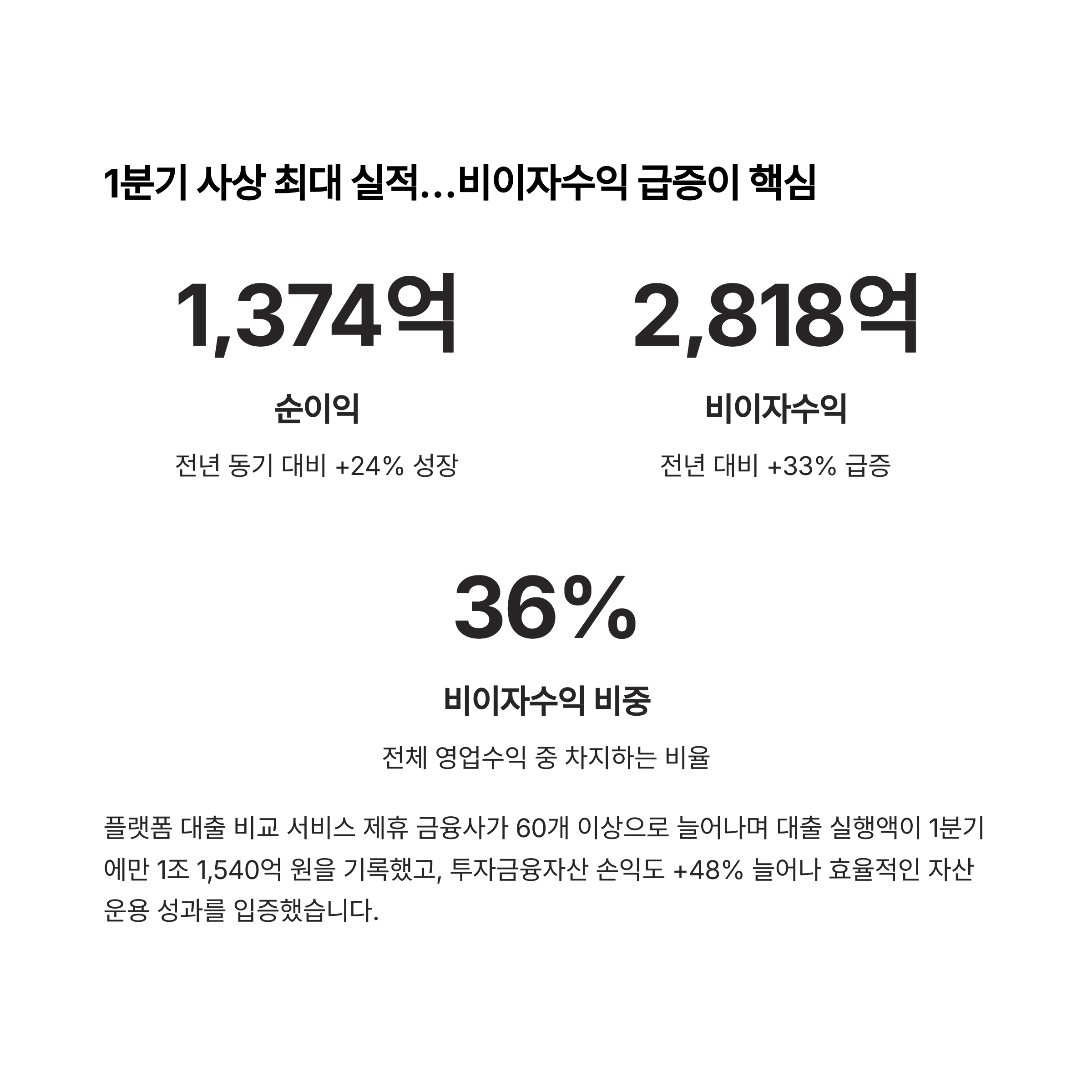 플랫폼 기반 디지털 금융기업으로의 성장을 다시 한번 입증했습니다.