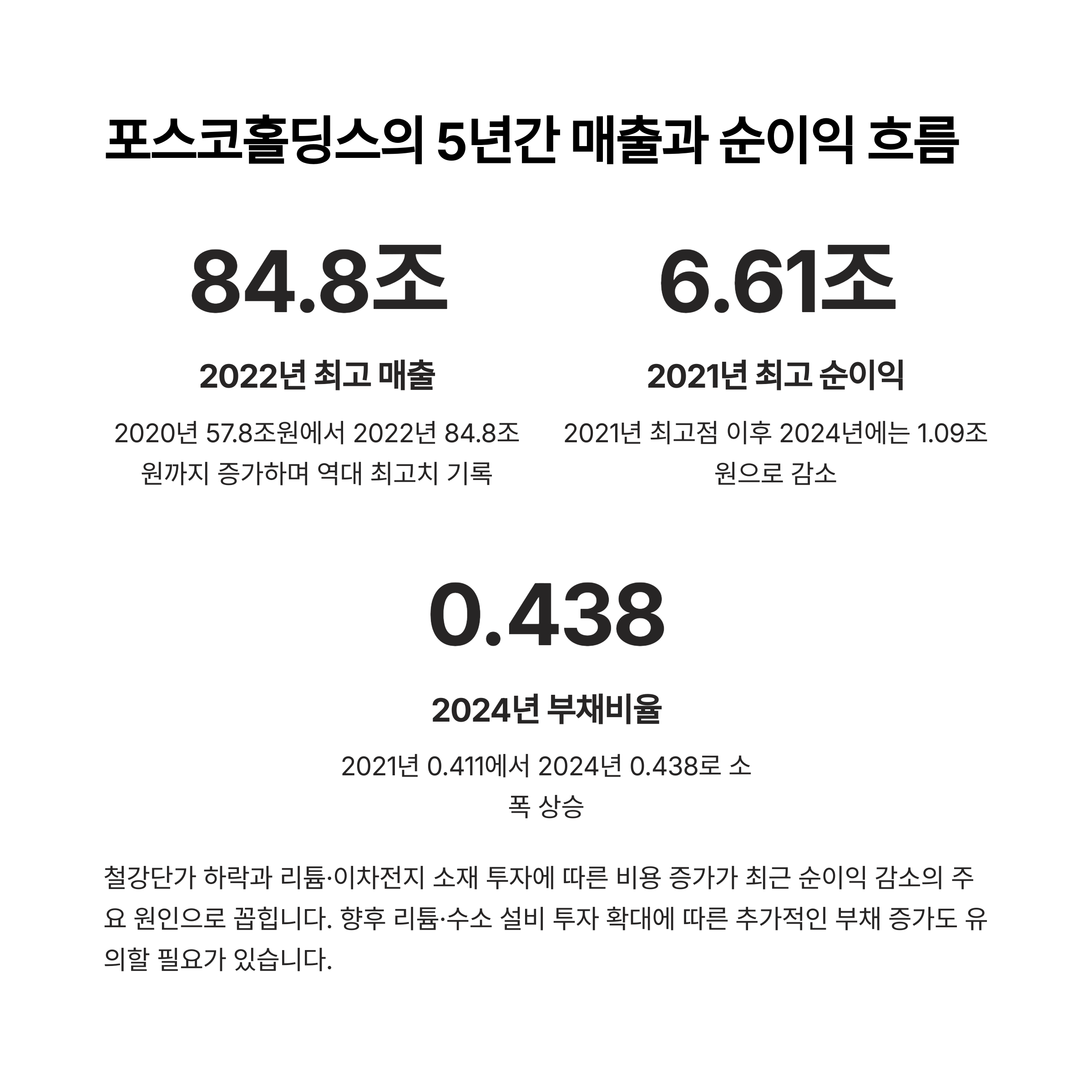 포스코홀딩스, 실적과 부채비율 흐름이 궁금하다면