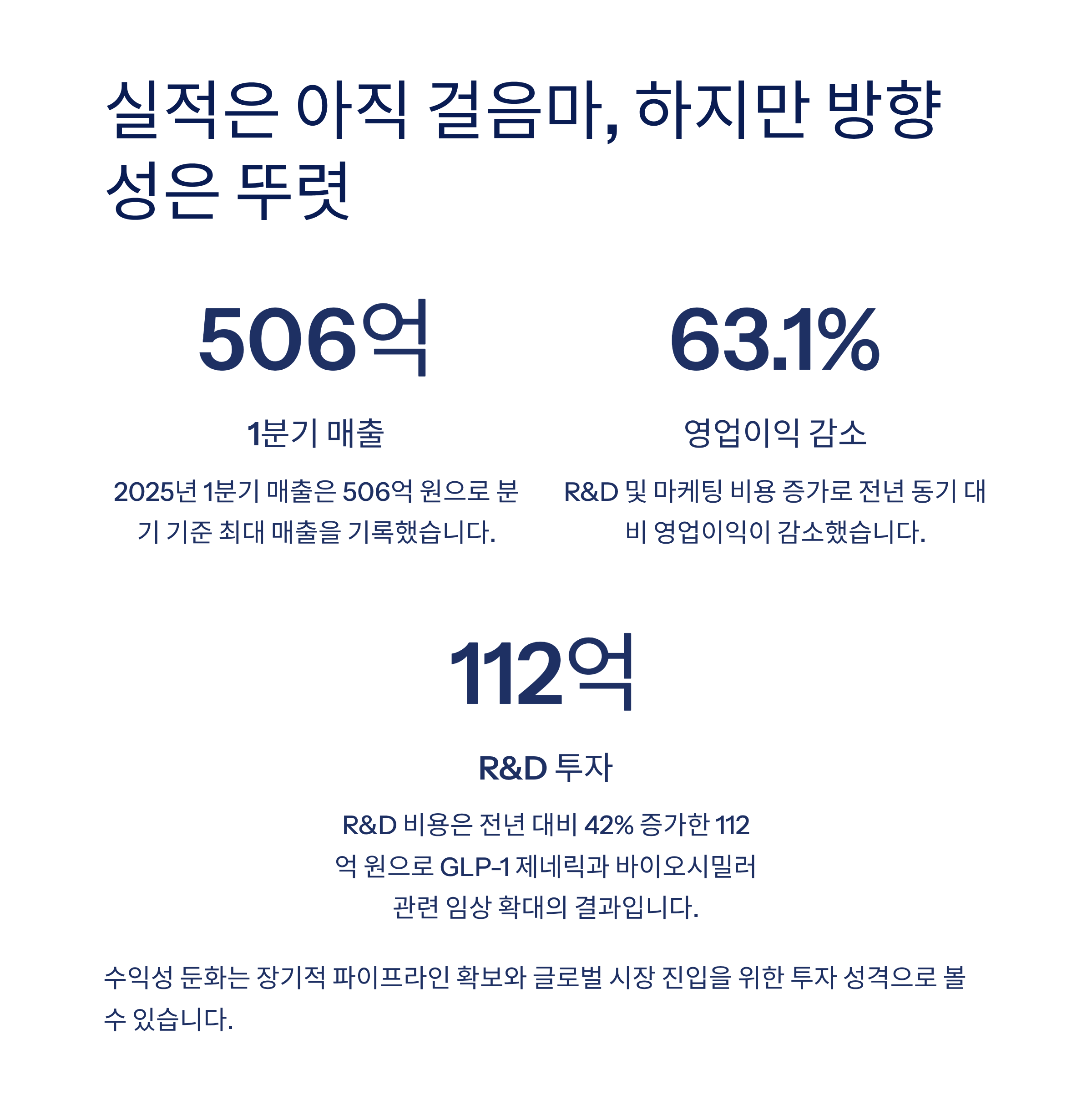 하지만 영업이익은 R&D 및 마케팅 비용 증가로 전년 동기 대비 63.1% 감소했습니다.