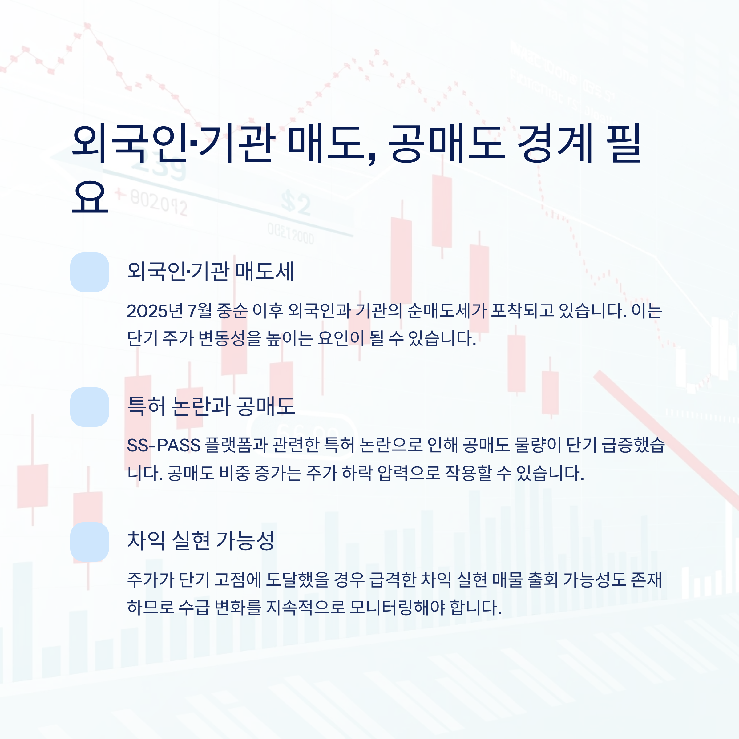 2025년 7월 중순 이후 외국인과 기관의 순매도세가 포착되고 있습니다.