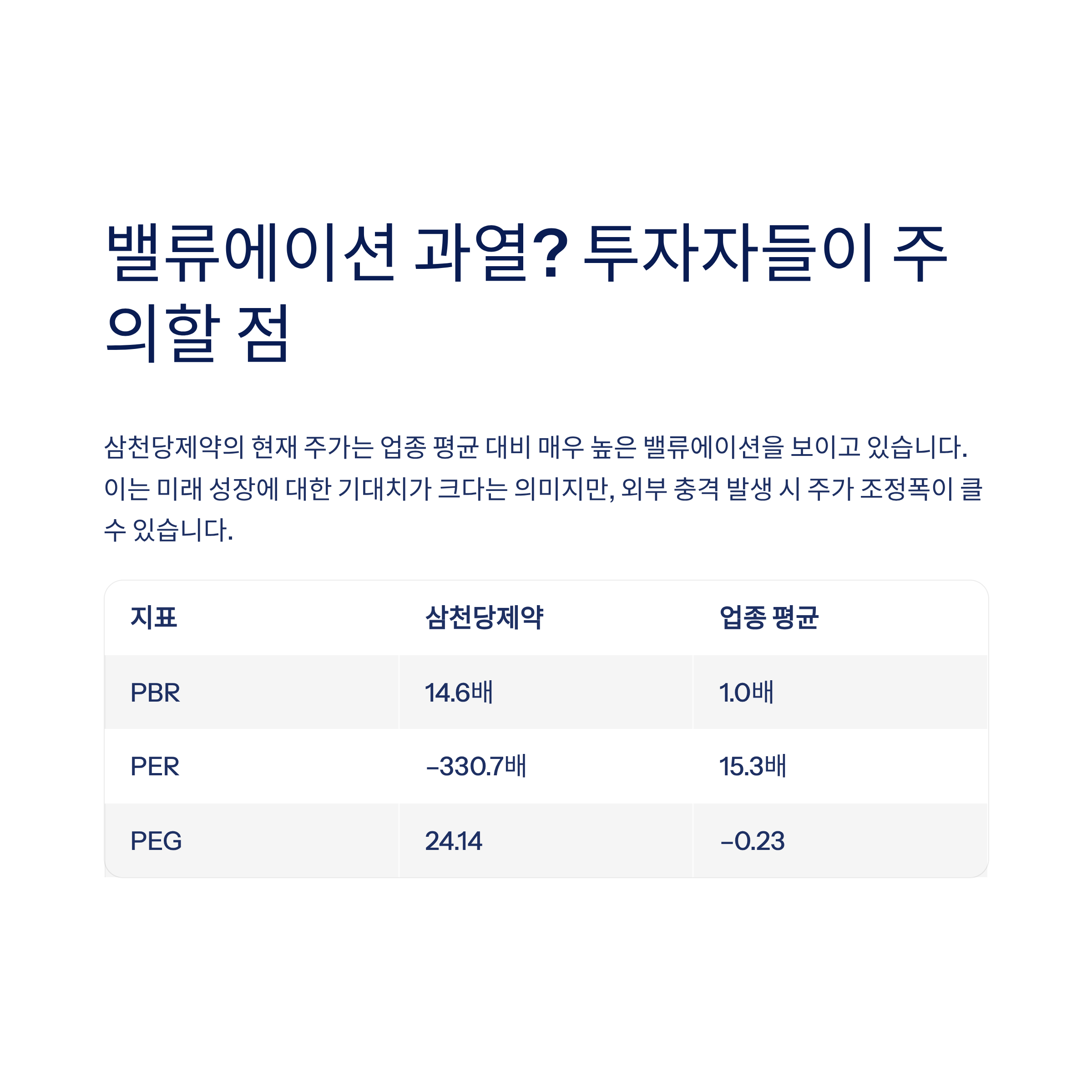 | 지표 | 삼천당제약 | 업종 평균 |