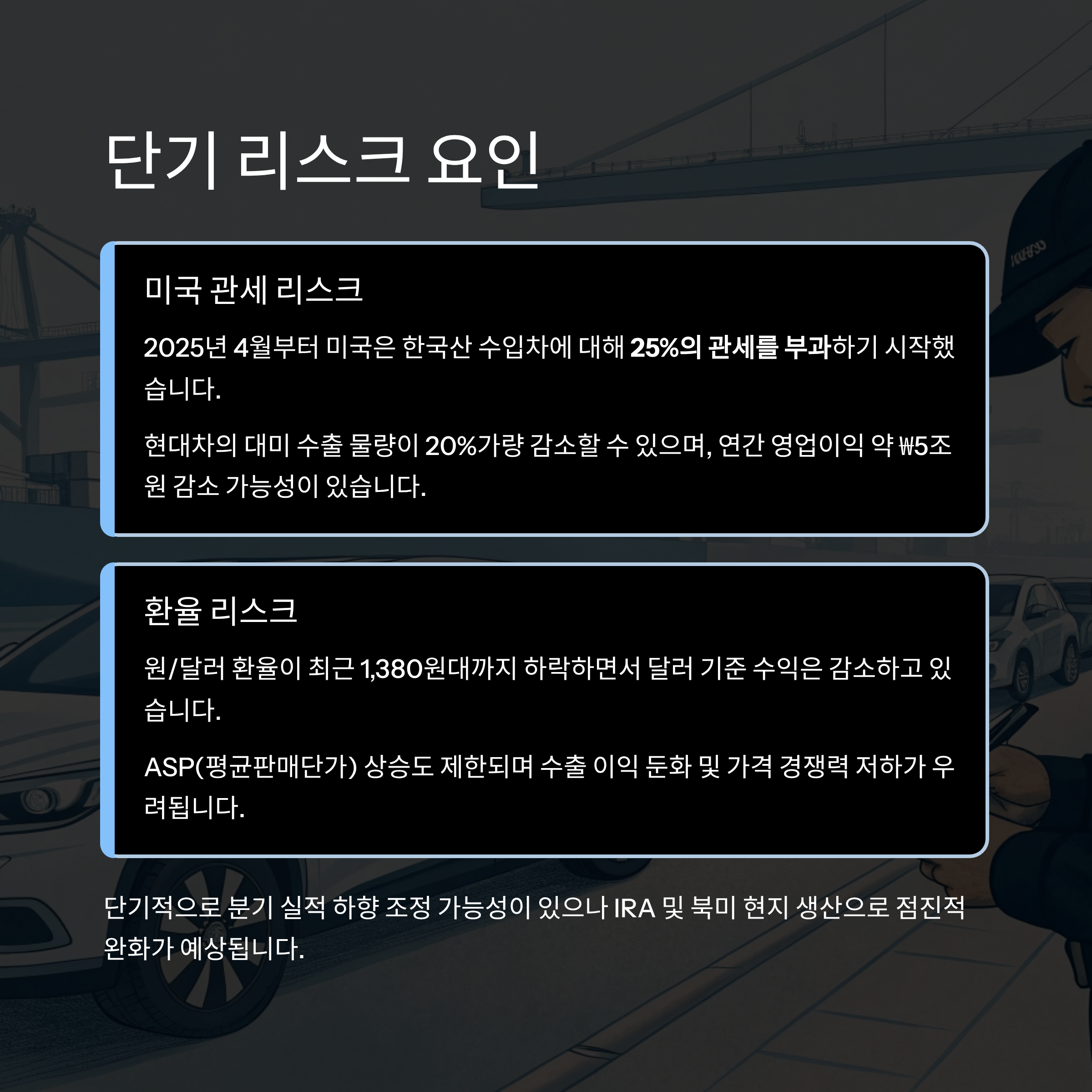 단기 리스크: 관세·환율, 실적에 그림자 드리우다