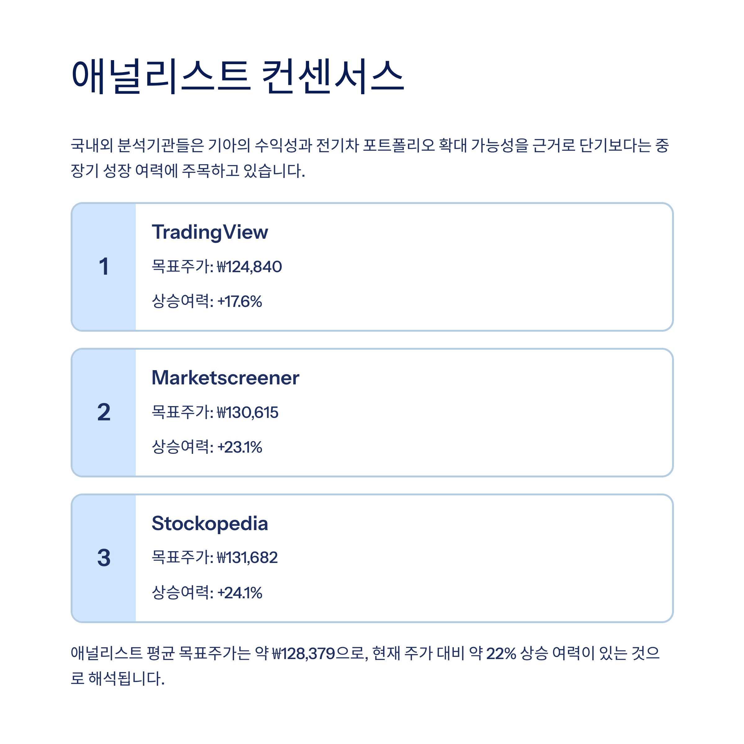 애널리스트 컨센서스: 목표가 평균 ₩128,379, 업사이드 존재