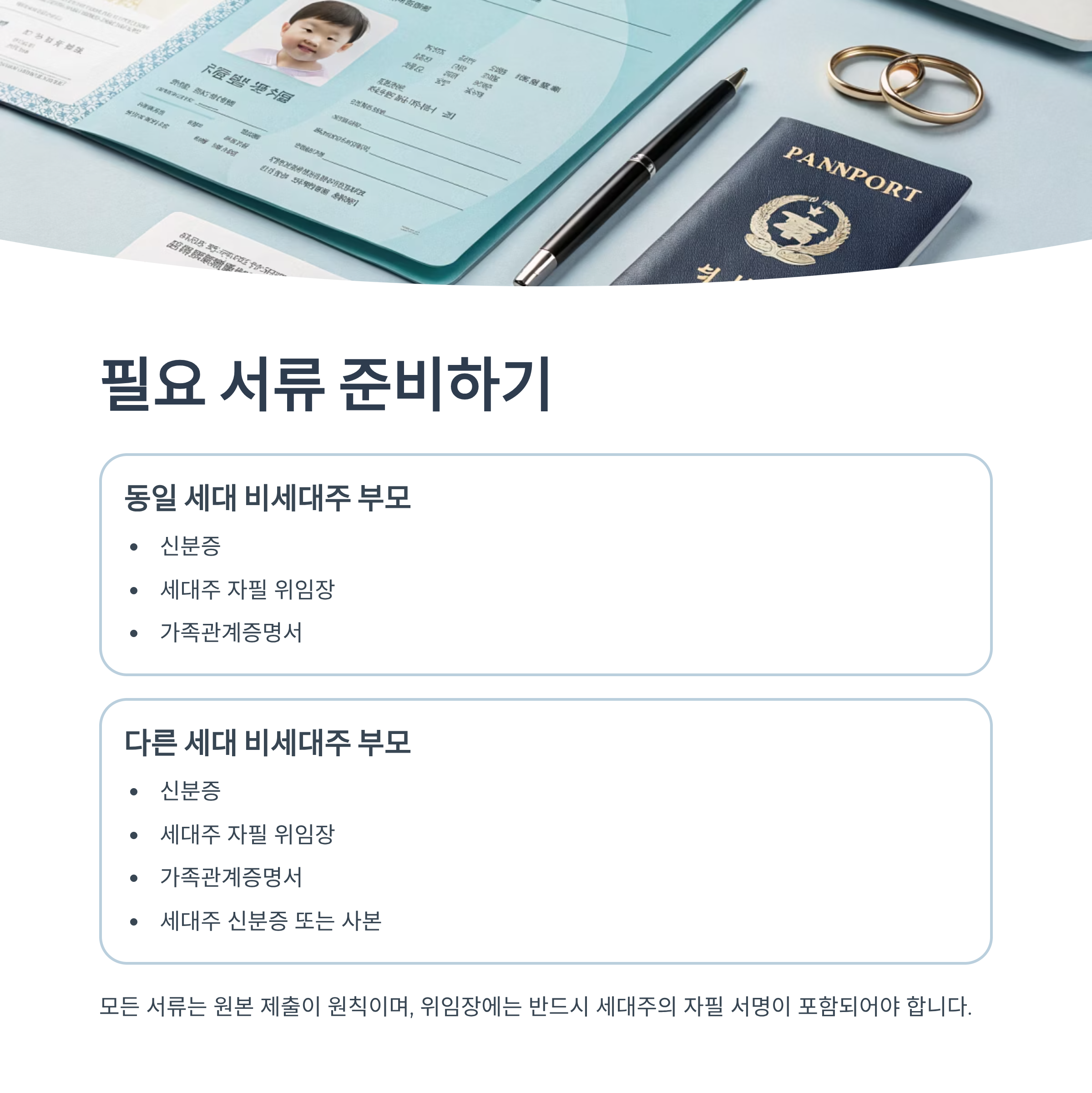 만약 세대주가 사망, 해외 체류, 거주불명 등의 사유로 직접 신청이 불가능한 경우, 비세대주 부모가 대신 신청할 수 있습니다.