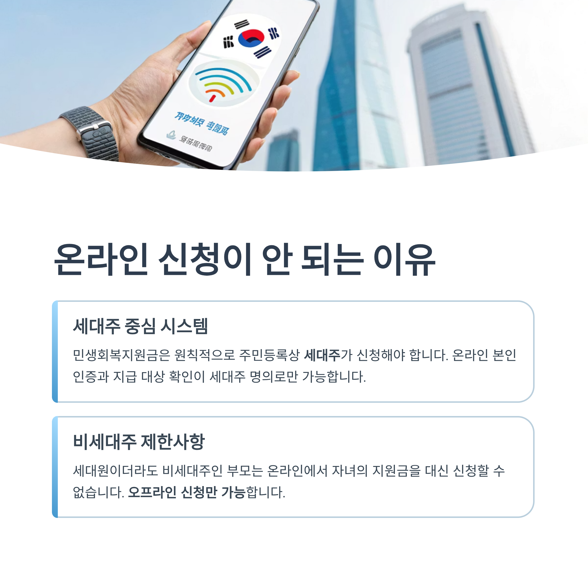 미성년 자녀가 포함된 가정에서, 부모가 세대주가 아닐 경우 민생회복지원금 신청은 온라인이 아닌 오프라인으로만 가능합니다. 이 글에서는 비세대주 부모가 미성년 자녀의 민생회복 소비쿠폰을 어떻게 신청할 수 있는지, 필요한 서류와 절차, 주의사항까지 정리해드립니다.