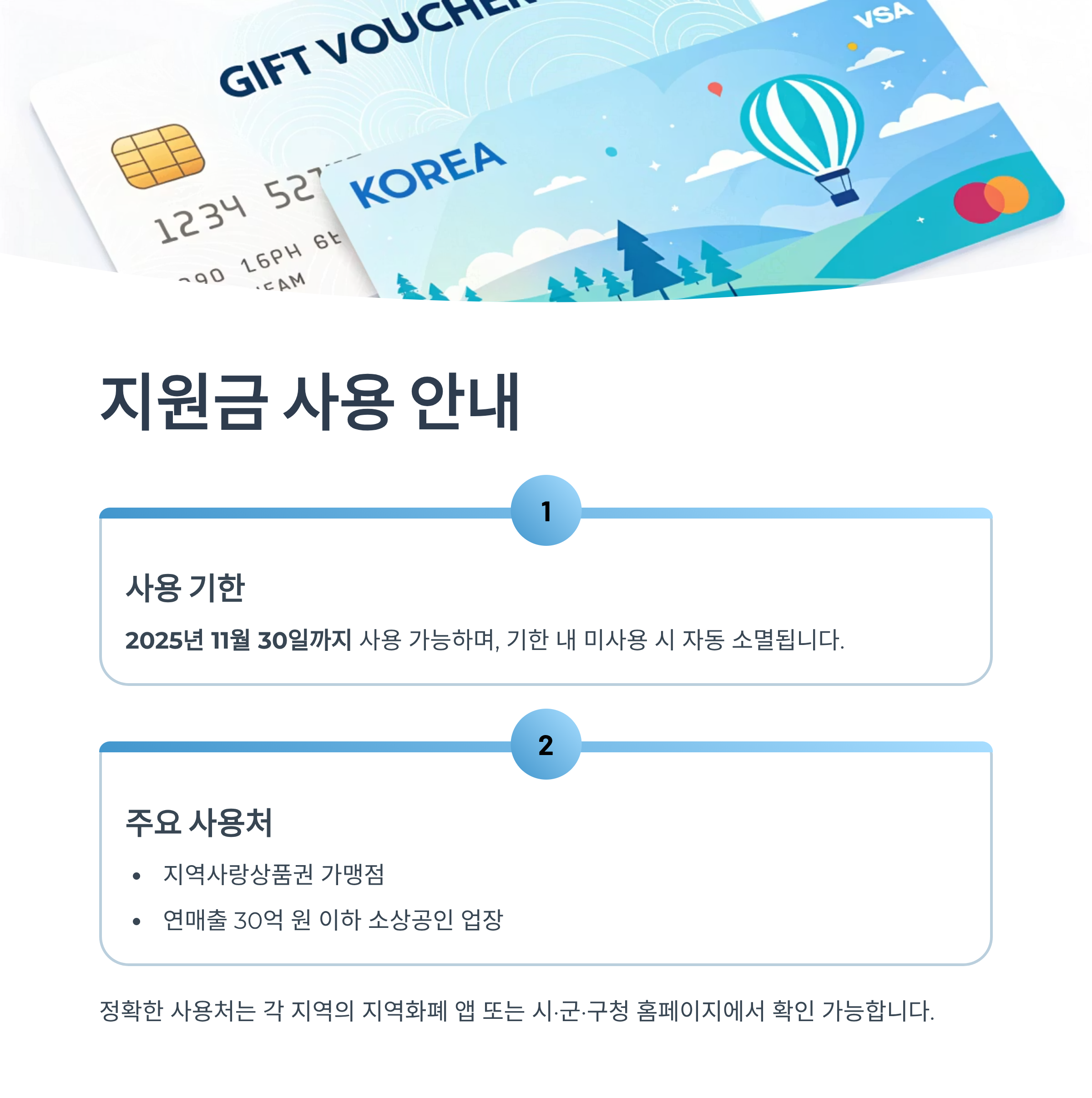 정확한 사용처는 각 지역의 지역화폐 앱 또는 시·군·구청 홈페이지에서 확인 가능합니다.