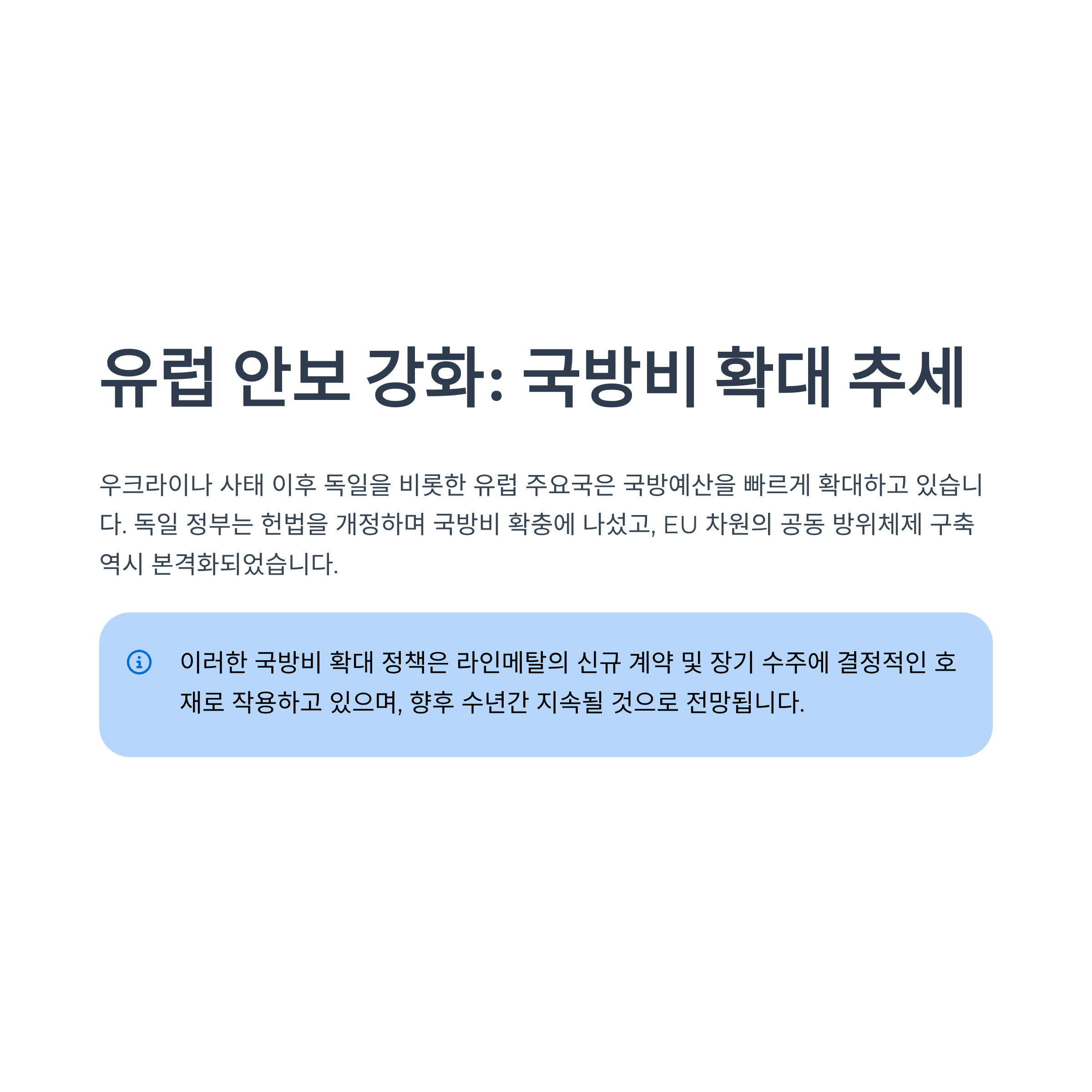이는 라인메탈의 신규 계약 및 장기 수주에 결정적인 호재로 작용하고 있습니다.
