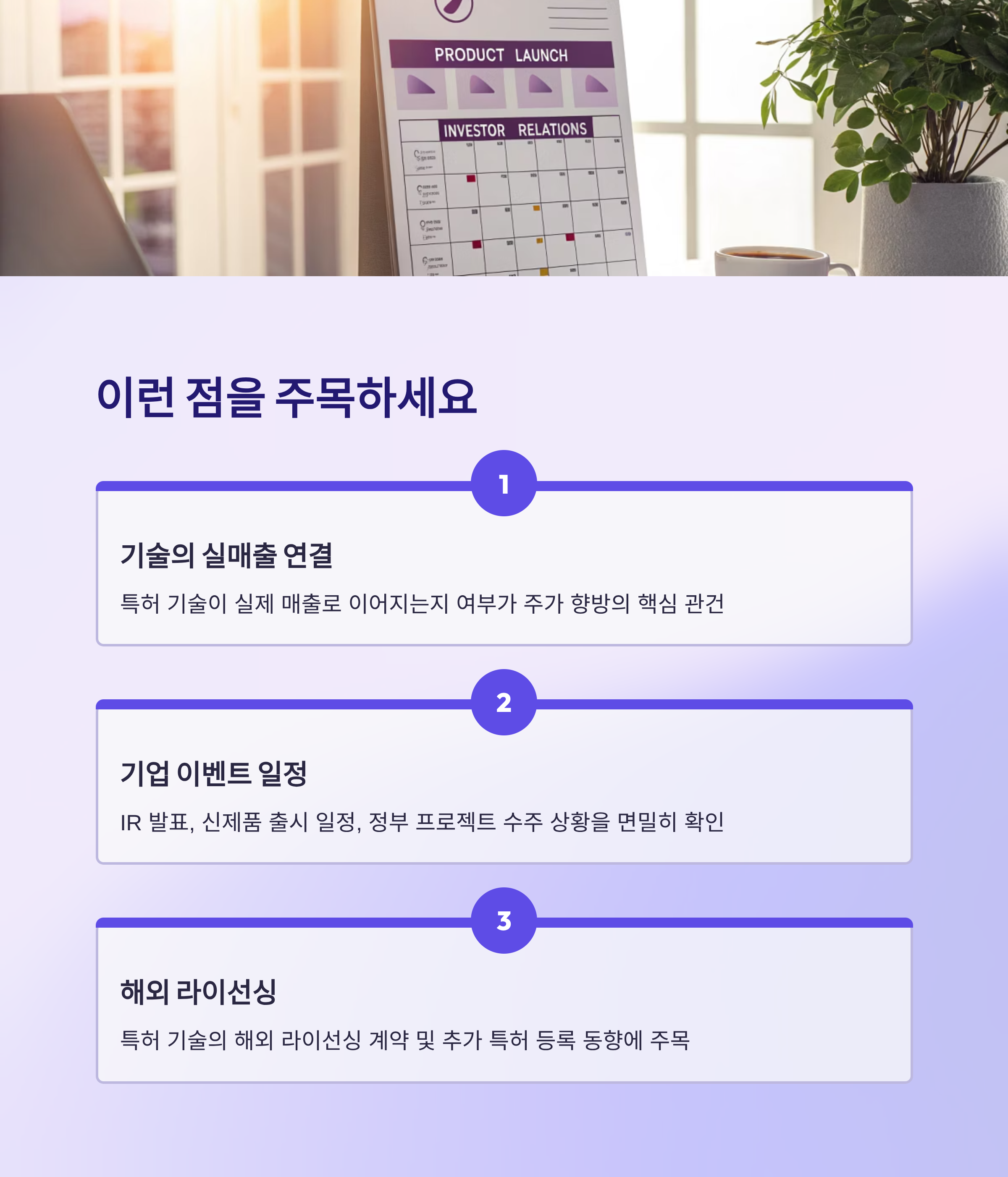 - 기업 실적 개선 여부, 신규 계약 발표, 투자 유치 뉴스 등도 지속적으로 모니터링 해야 합니다.
