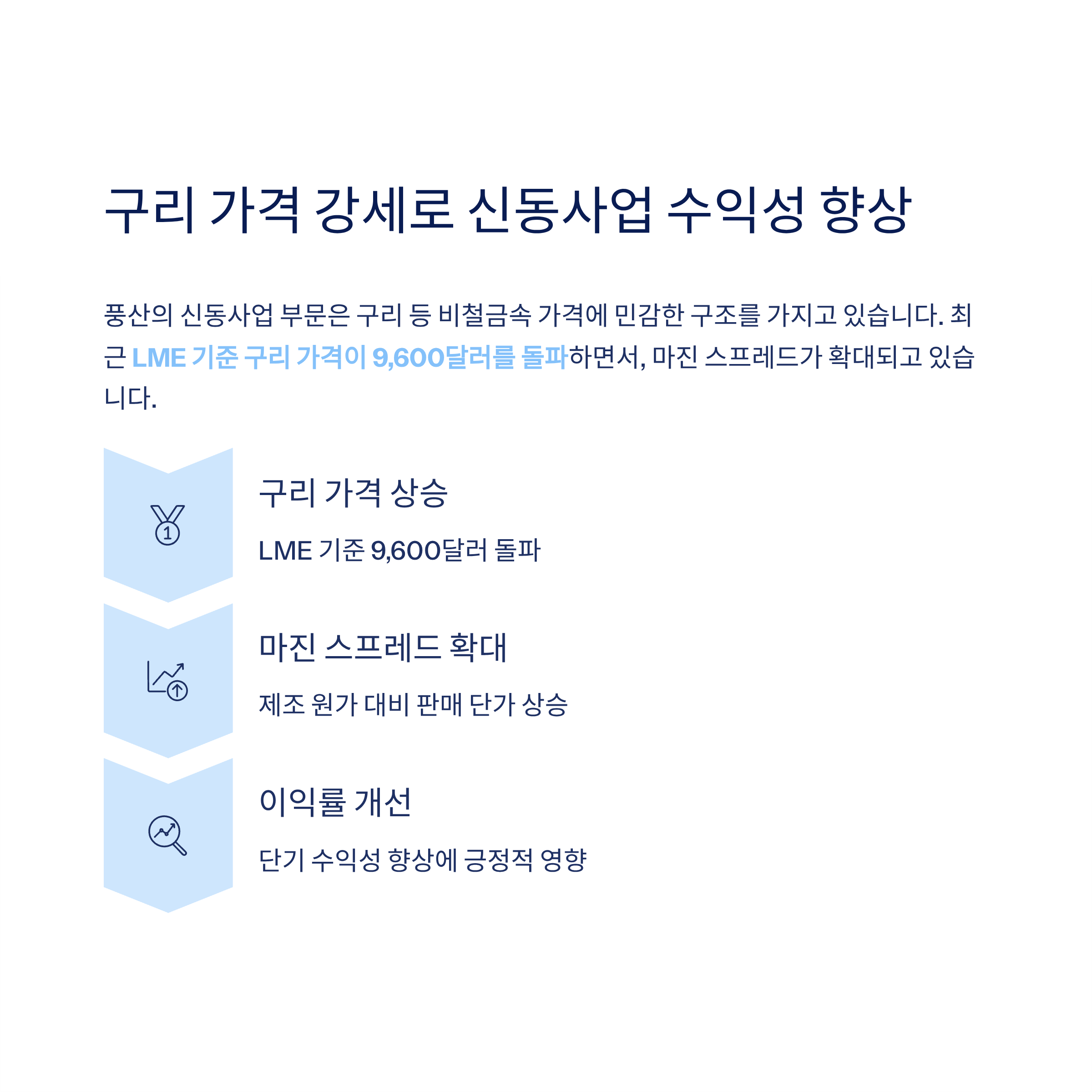 구리 가격 강세…신동사업 수익성 탄력 기대
